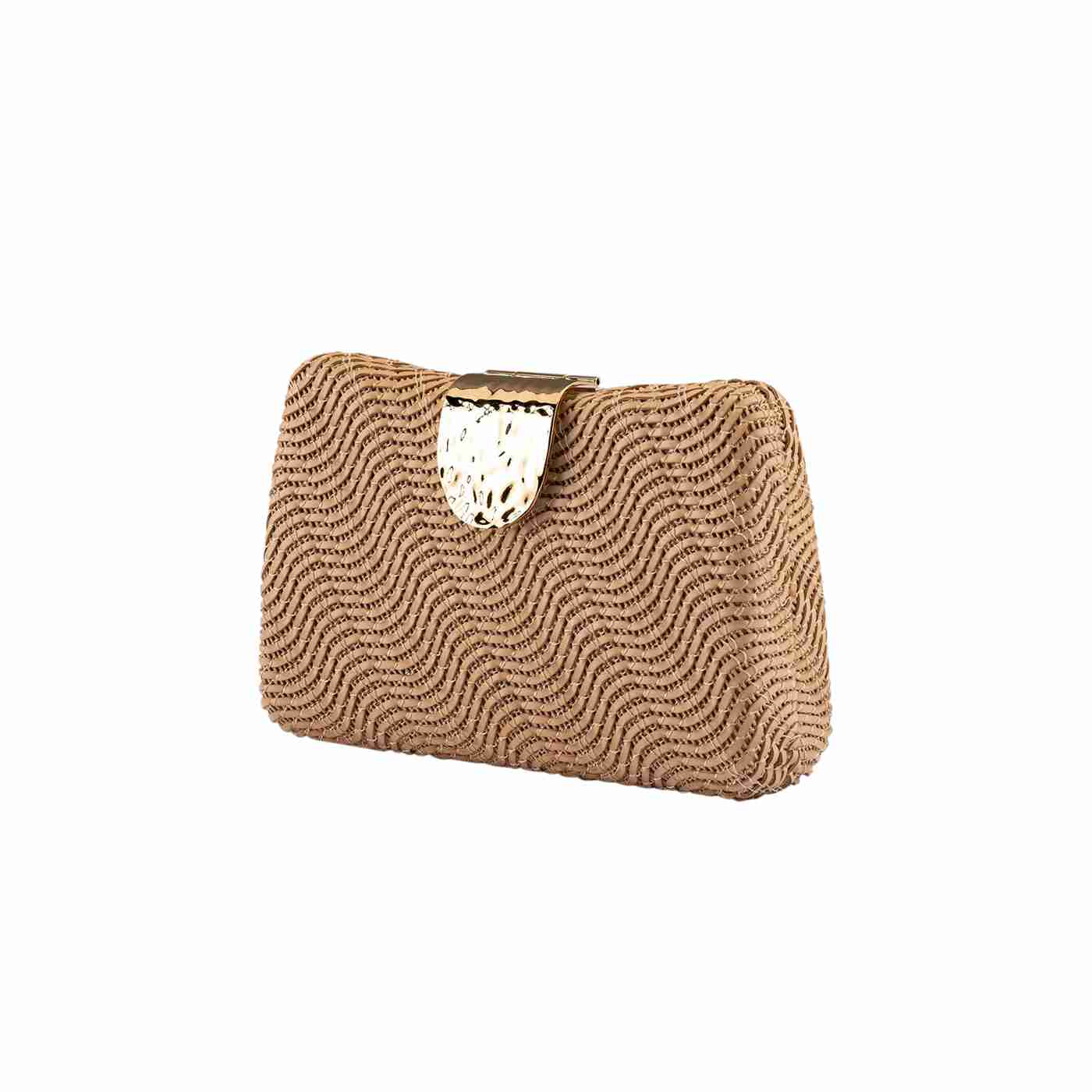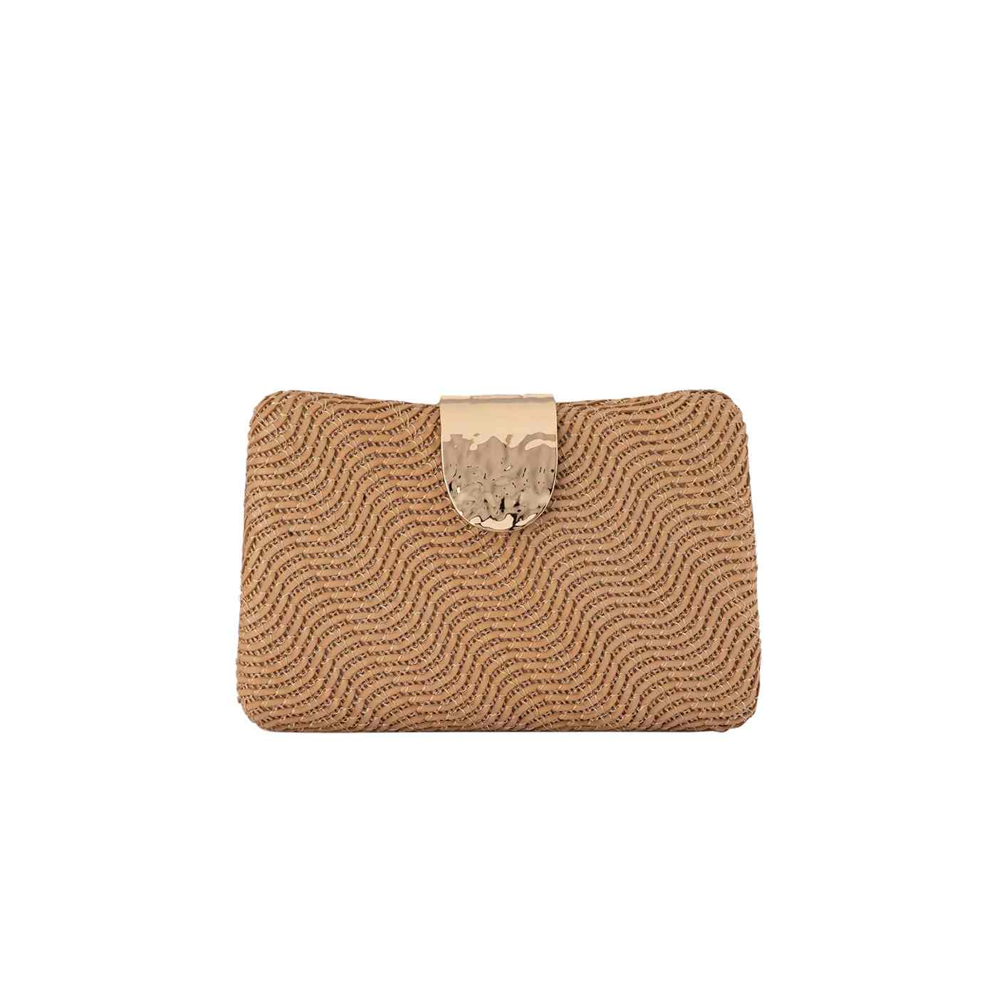The LINDY Woven clutch features a unique, textured exterior and a feature lock with a hammered finish. This versatile clutch is perfect for any occasion, from beach party to bar, and has plenty of room inside for all of your event necessities. Can be worn nestled in the palm of your hand, or attach the included shoulder chain to go hands-free.