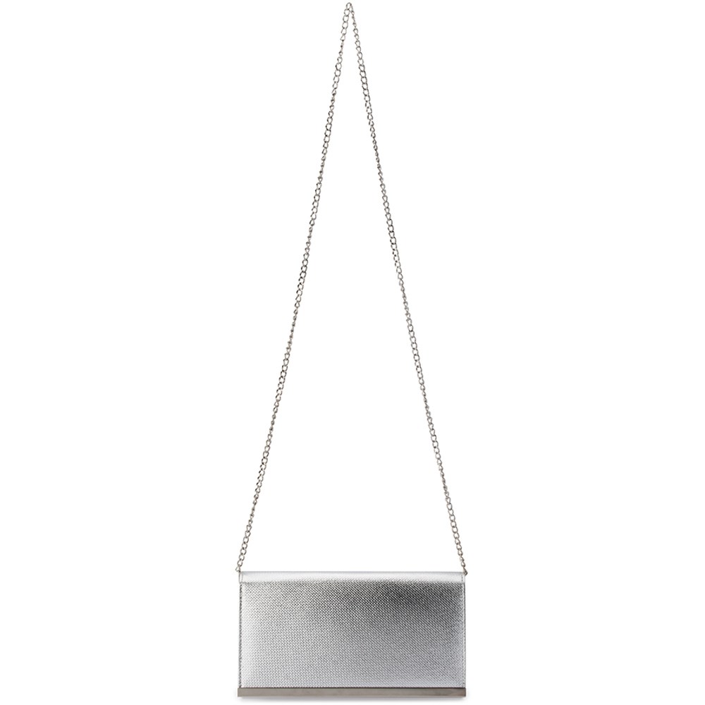 Elegant and understated, the Maddie Metallic Embossed Foldover Clutch is a timeless piece that’ll go with just about any evening look. Featuring a metallic textured vegan leather outer with a metal bar trim and a roomy interior for all of your event essentials, including your smart phone, cards, keys, cash and lippy. Pop on the removable shoulder chain to go hands free on the dance floor.