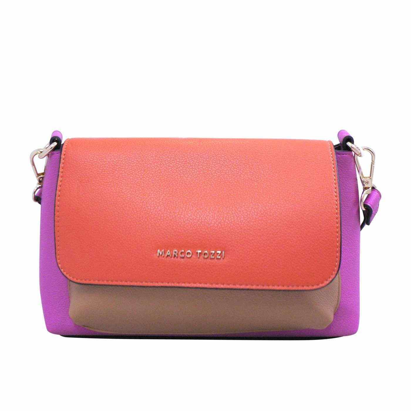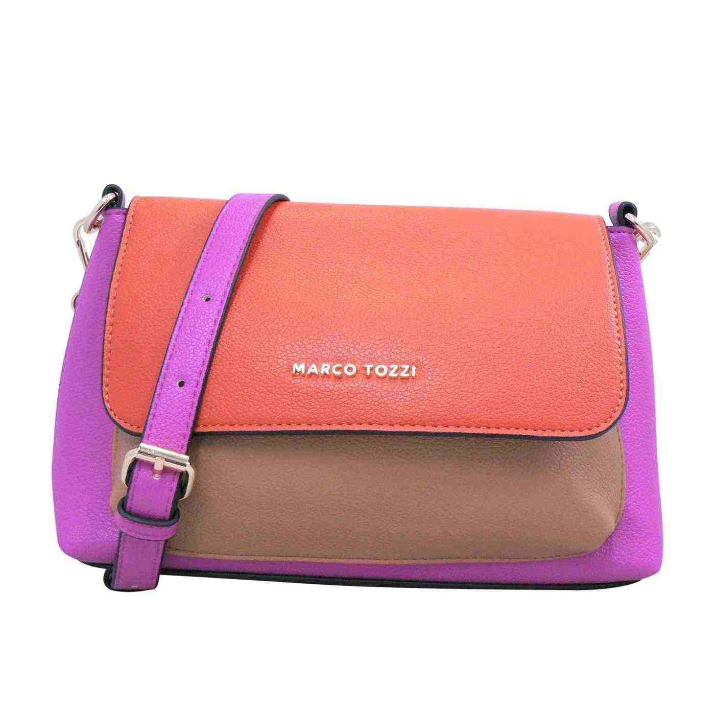 The Marco Tozzi Daisy in Pink Combo is a vibrant statement piece that perfectly balances bold colour and modern elegance. Crafted from 100% vegan, environmentally friendly materials, this crossbody bag showcases a striking mix of pink, orange, and tan tones that add a playful yet sophisticated edge to any outfit. Its sleek structured silhouette and adjustable strap make it both practical and stylish, ideal for adding a pop of colour to your everyday look or enhancing your evening ensemble.