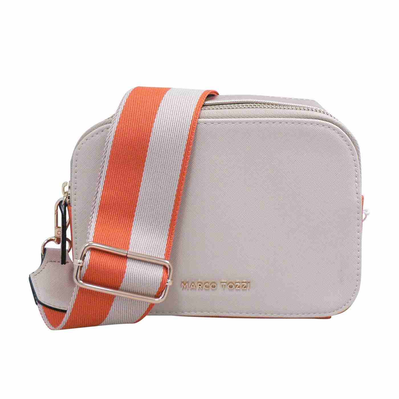 Stylish crossbody design with adjustable striped strap