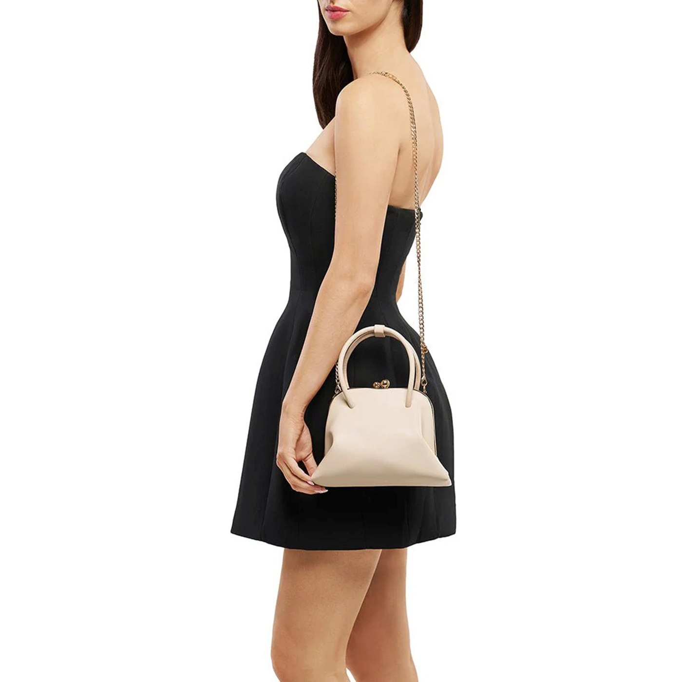 The LEANDRA Top Handle Bag is the perfect piece to complement any outfit for any occasion. Sleek and timeless, carry this roomy top handle bag in the crook of your arm or use the included detachable shoulder chain to go hands free. This bag has plenty of space inside for glasses and a large smartphone, and the frame and kiss lock offer added security for all your belongings.