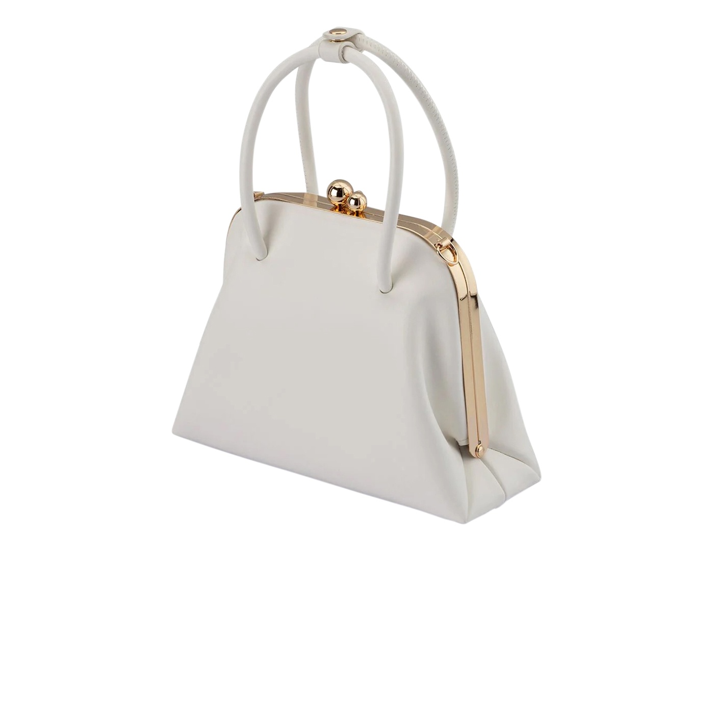 The LEANDRA Top Handle Bag is the perfect piece to complement any outfit for any occasion. Sleek and timeless, carry this roomy top handle bag in the crook of your arm or use the included detachable shoulder chain to go hands free. This bag has plenty of space inside for glasses and a large smartphone, and the frame and kiss lock offer added security for all your belongings.