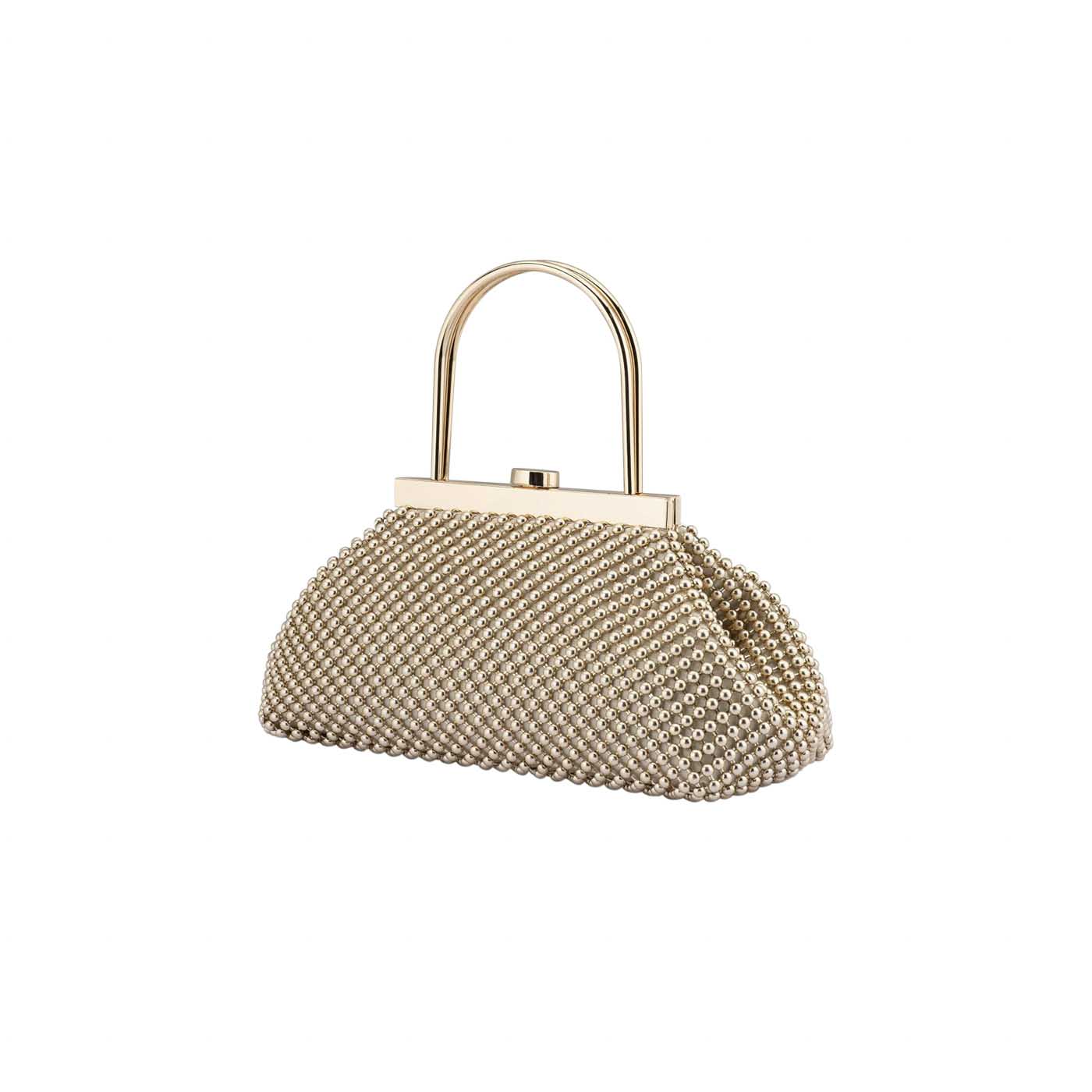 The MIMI Ball Mesh Frame Bag will add a fresh and classy pop to any outfit. With a soft hand feel, brushed metal frame, top handle and block lock closure to keep your belongings safe and secure, this unique A-Line shaped bag has plenty of room inside for all your event accessories whilst maintaining a sophisticated silhouette.