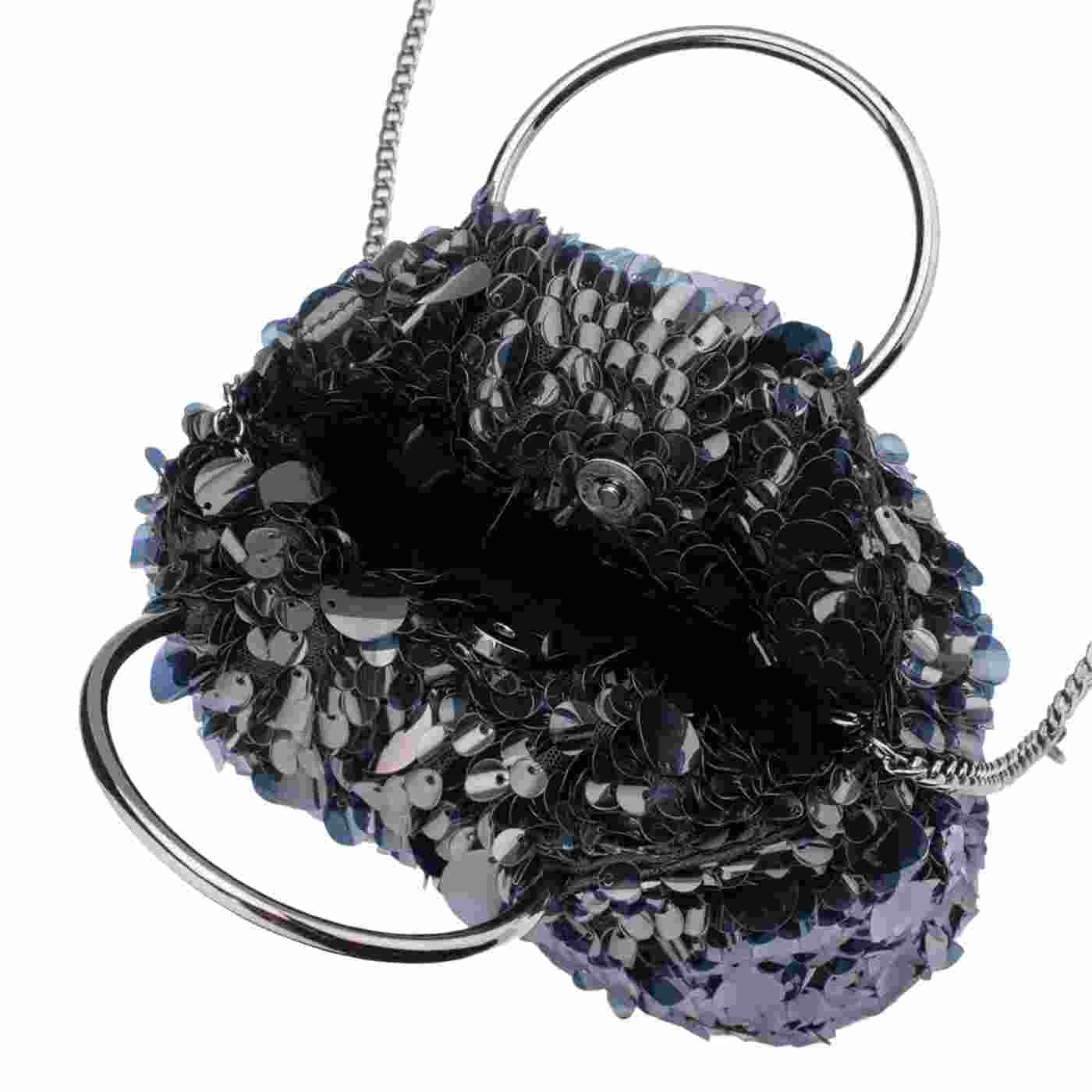 Adding to our best selling collection of ring handle bags, the VERA Sequin Top Handle Bag is a beautiful pouch style evening bag covered in glittering metallic sequins with a magnetic closure to keep your belongings safe and secure. Slip the bangles over your wrists or attach the additional shoulder chain for a classy, hands free look.