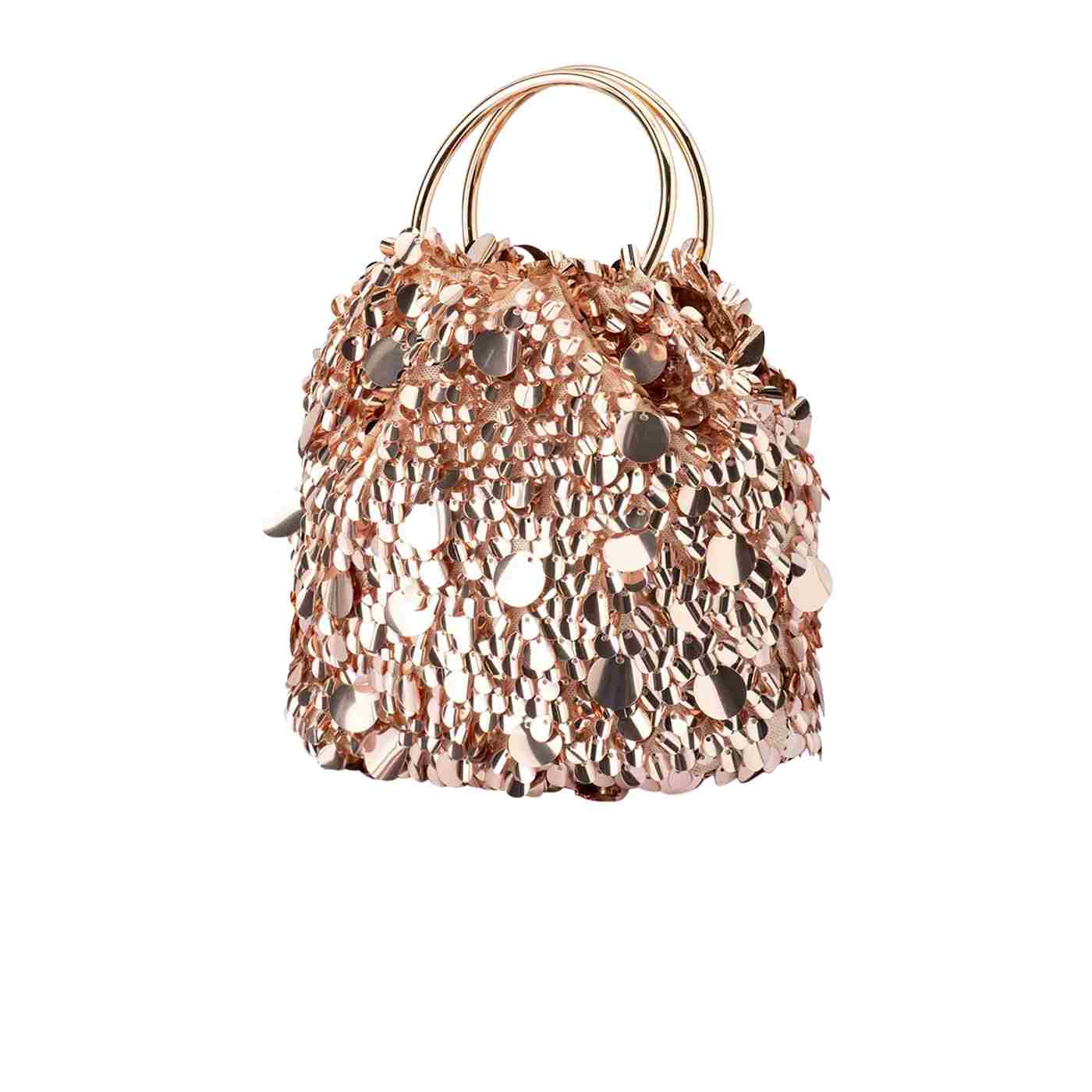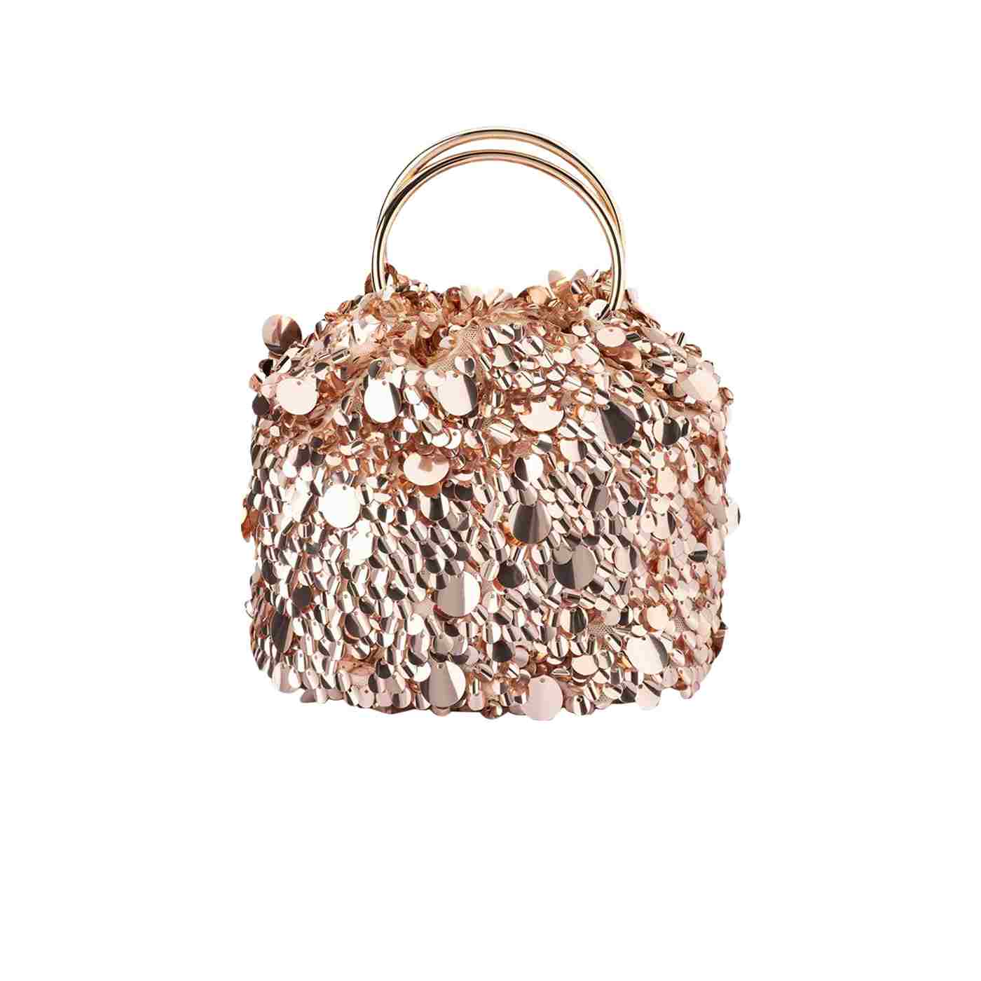 Adding to our best selling collection of ring handle bags, the VERA Sequin Top Handle Bag is a beautiful pouch style evening bag covered in glittering metallic sequins with a magnetic closure to keep your belongings safe and secure. Slip the bangles over your wrists or attach the additional shoulder chain for a classy, hands free look.
