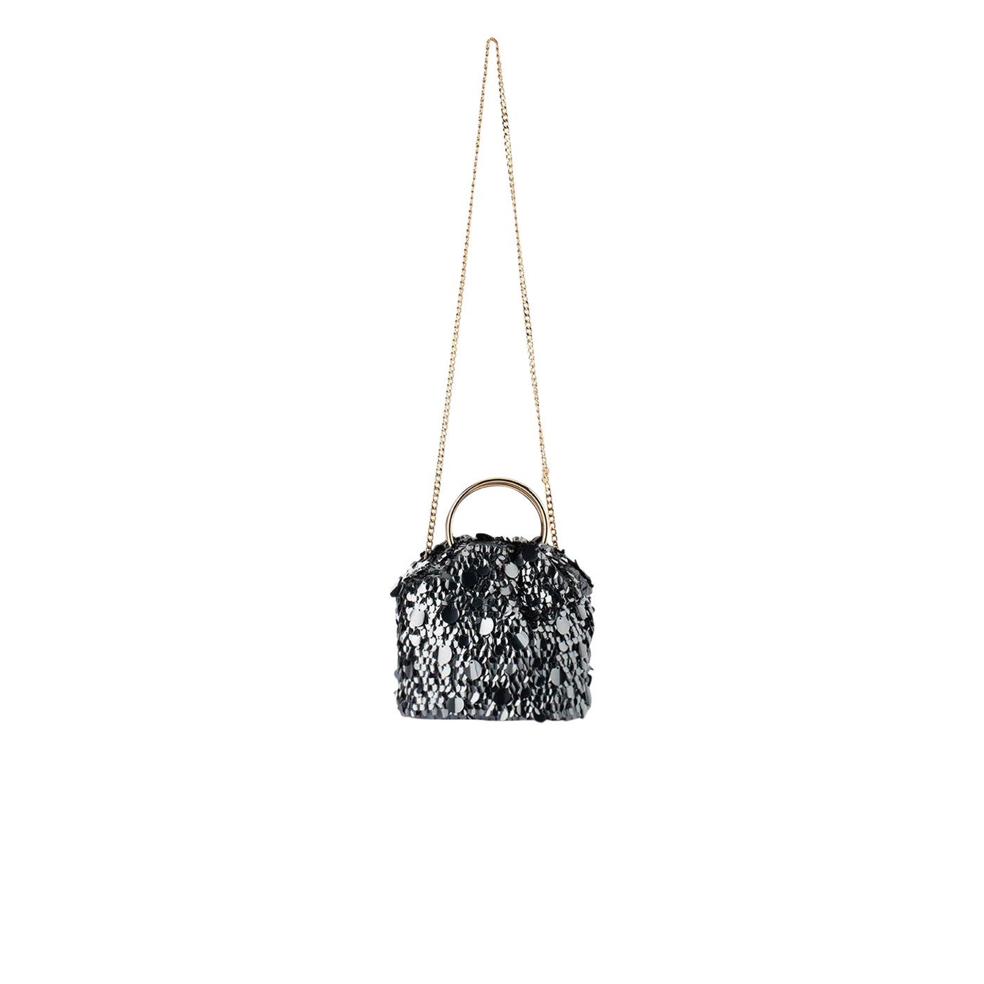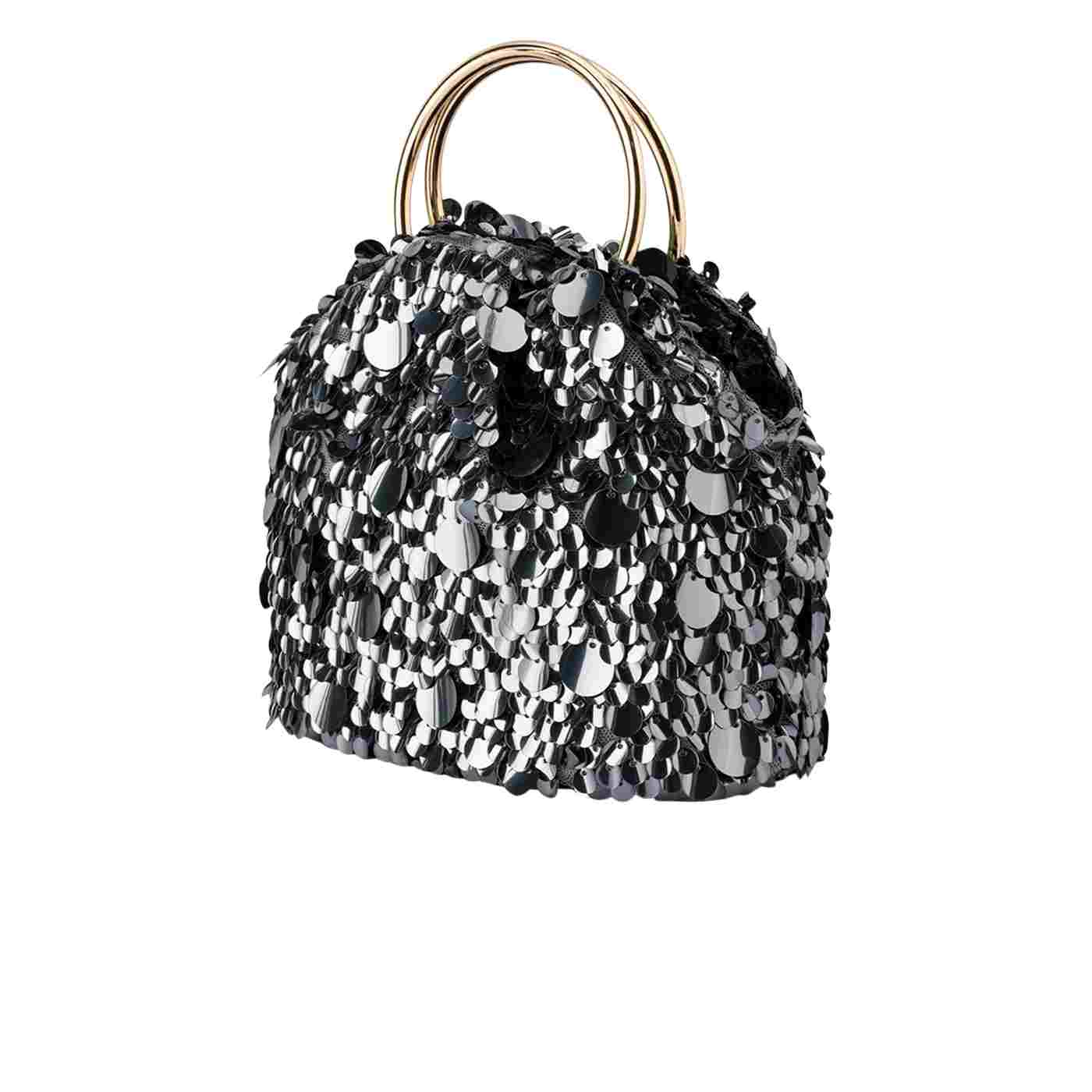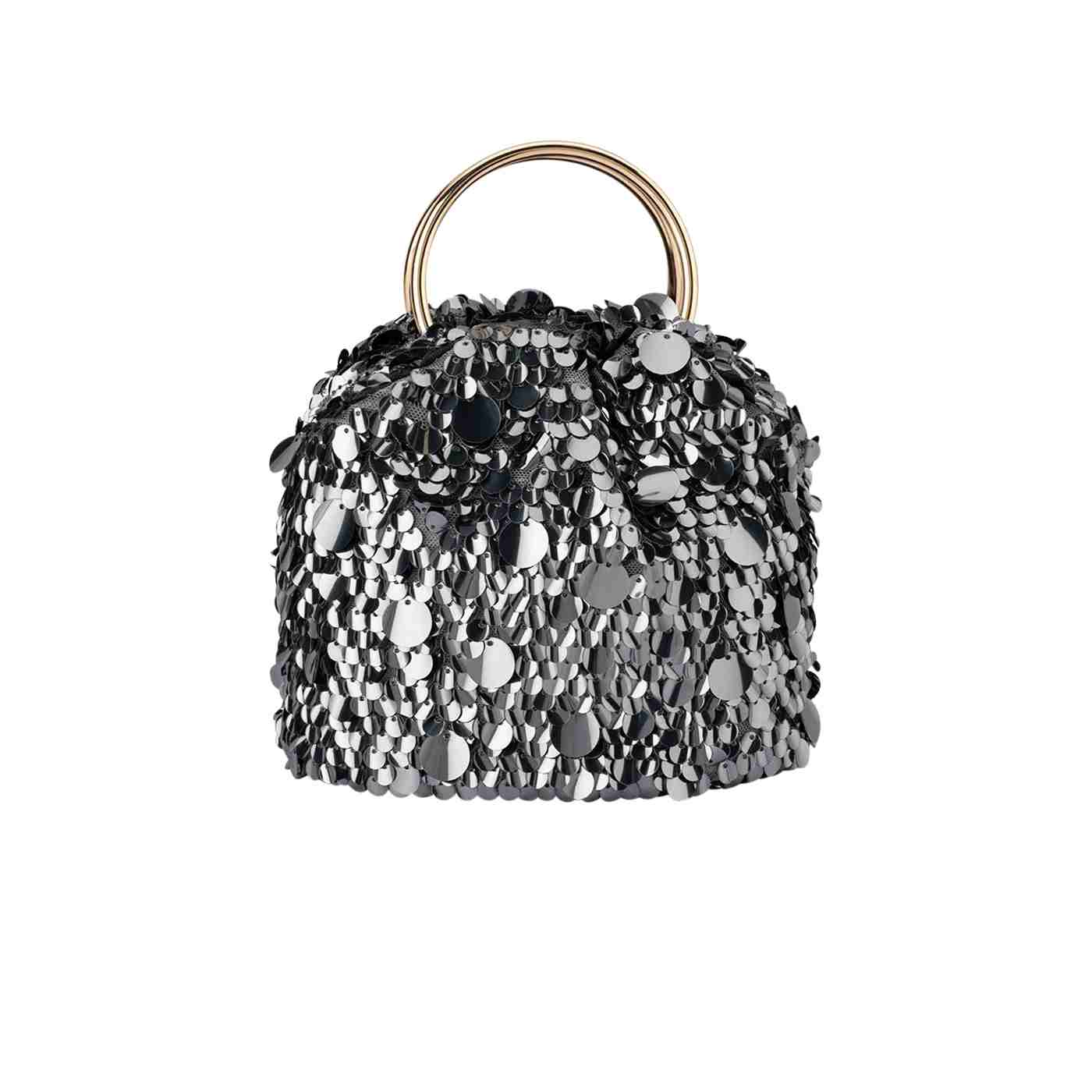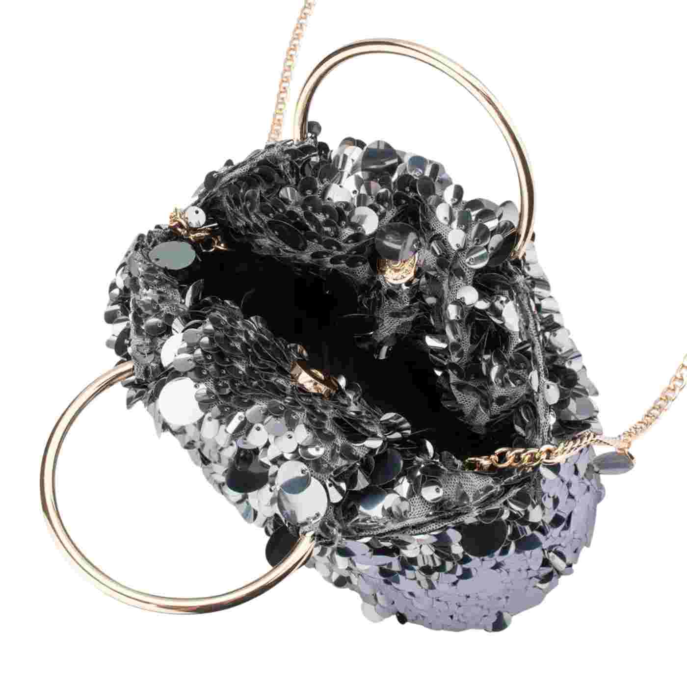 Adding to our best selling collection of ring handle bags, the VERA Sequin Top Handle Bag is a beautiful pouch style evening bag covered in glittering metallic sequins with a magnetic closure to keep your belongings safe and secure. Slip the bangles over your wrists or attach the additional shoulder chain for a classy, hands free look.