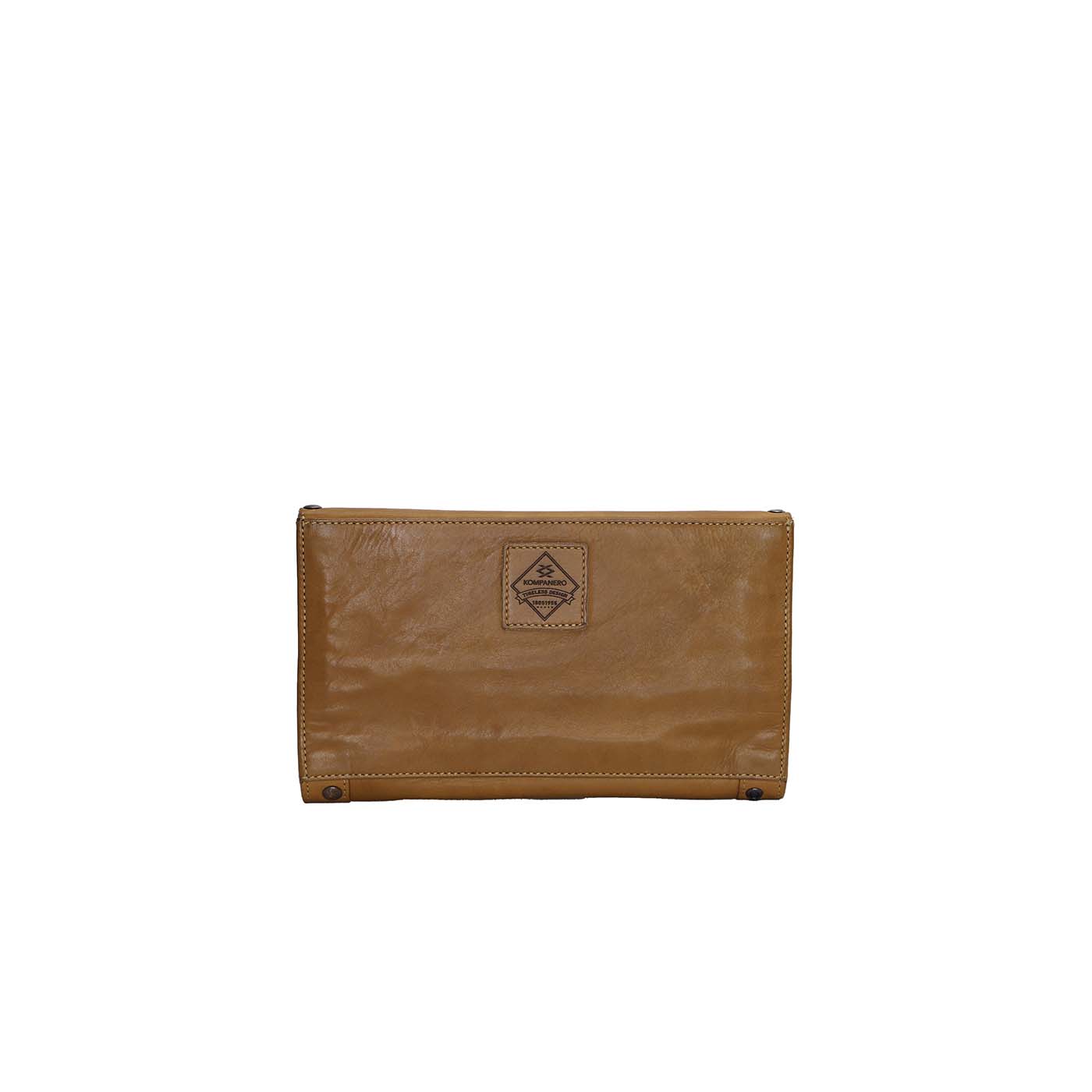 QUEENIE by Kompanero is a larger multi-use wallet, she has ample storage with 2 zipped pockets, 20 card holders and is secured with a push stud closure. Featuring stud detailing on the front, Queenie is also RFDI protected, so you can travel with her safely.