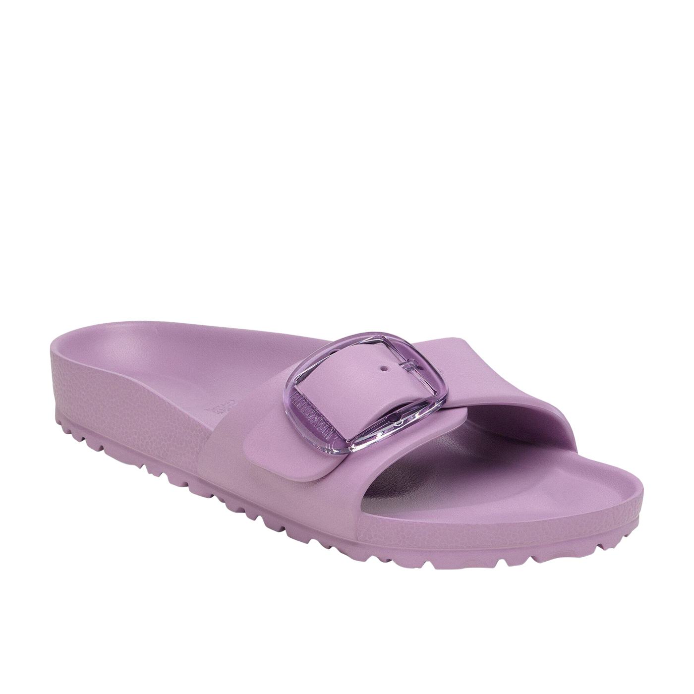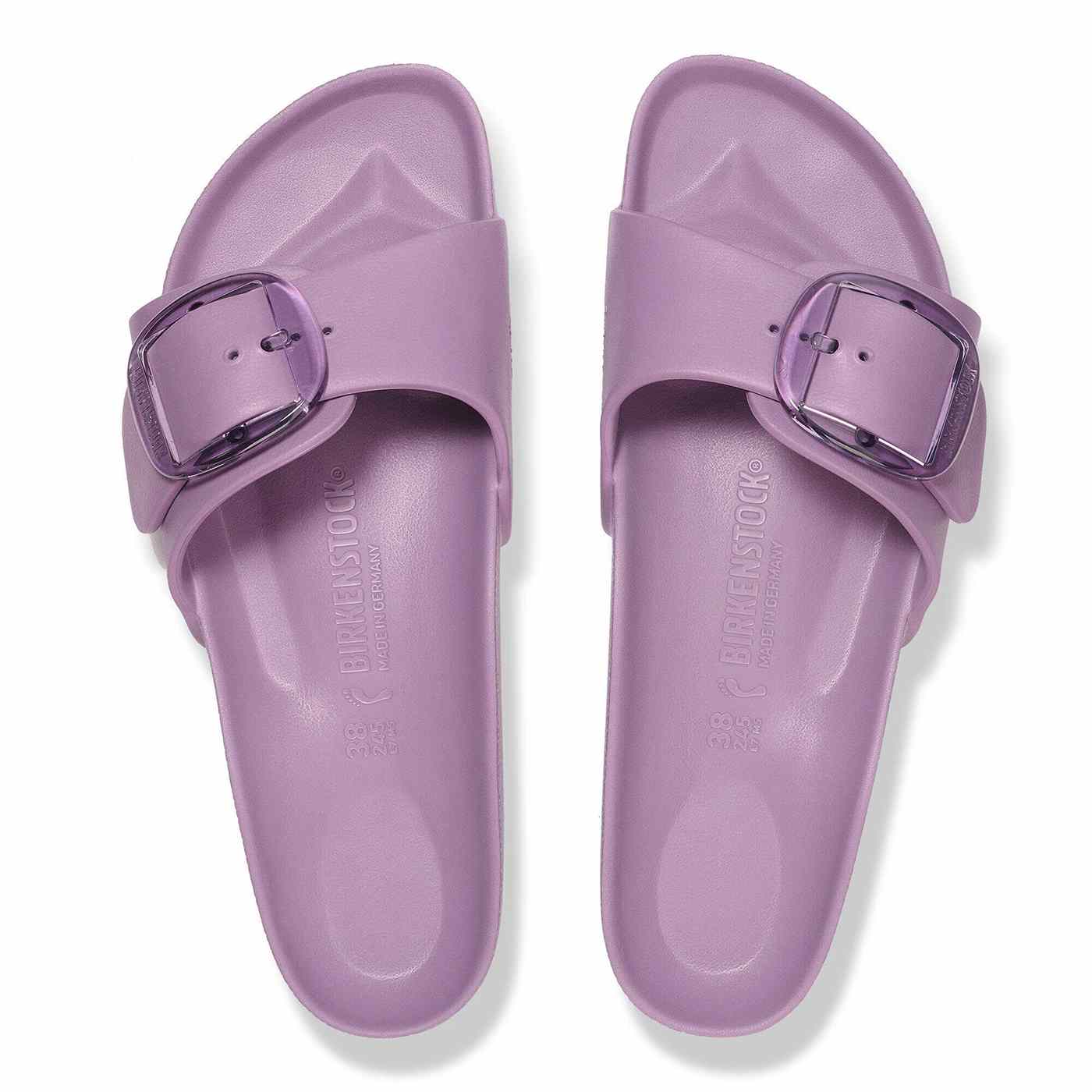 This is a new and modern interpretation of the Birkenstock classic Madrid. This version features our popular Big Buckle made from a stainless synthetic material and makes an impression with its durability and minimalist design. Modeled on the cork sandal, it is made from the ultra-lightweight and highly flexible synthetic material EVA. The high-quality, odor-neutral EVA has been tested for harmful substances and combines numerous positive attributes: it is very light, highly elastic, shock-absorbent, water-resistant and skin-friendly.