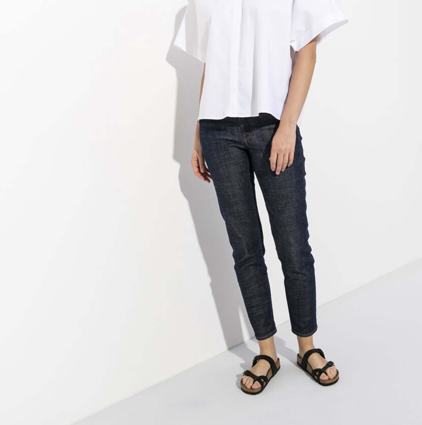 The BIRKENSTOCK Mayari thong sandal is a distinctive classic model with a toe loop and cross strap. The combination of anatomically shaped footbed and secure adjustable instep strap makes Mayari extremely wearable in a wide range of situations.
