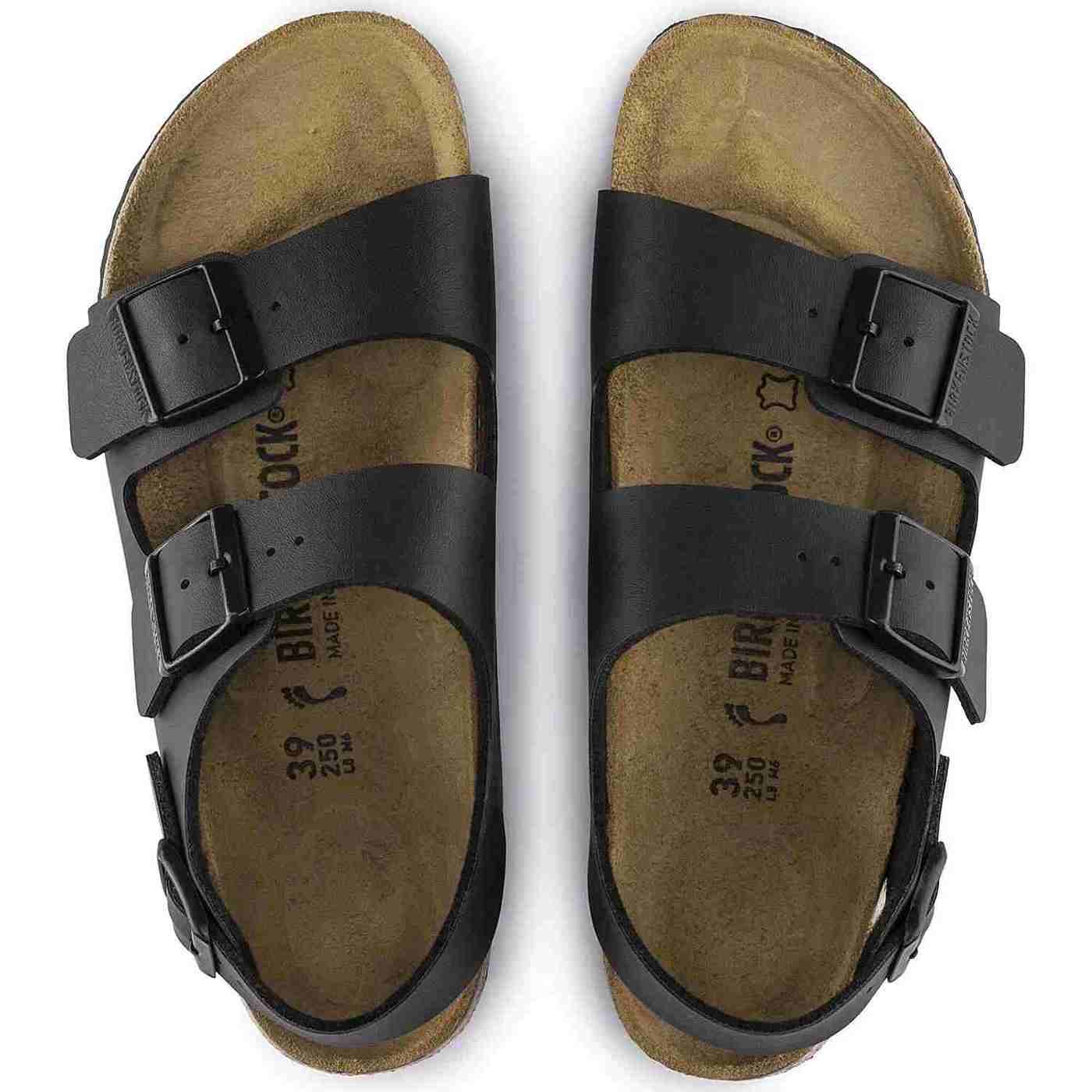 The BIRKENSTOCK Milano guarantees maximum grip and gives the feet stability in any movement scenario. This is thanks to the slightly more compact upper with two straps and the wide backstrap. The upper is made from the skin-friendly, hard-wearing synthetic material Birko-Flor®.