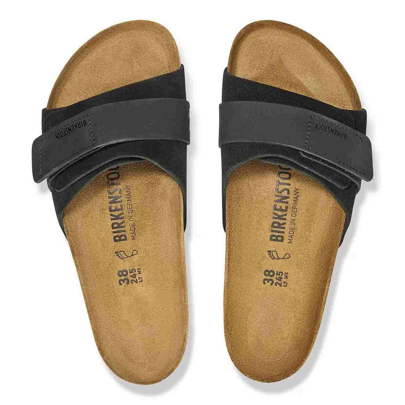 The casual BIRKENSTOCK Oita takes its inspiration from the classic Kyoto model and stands out with its slim and feminine design and individually adjustable fastener. This offers optimum grip and is complemented by two decorative rivets. The upper is made from especially soft suede, which hugs the foot like a second skin, combined with high-quality nubuck leather.