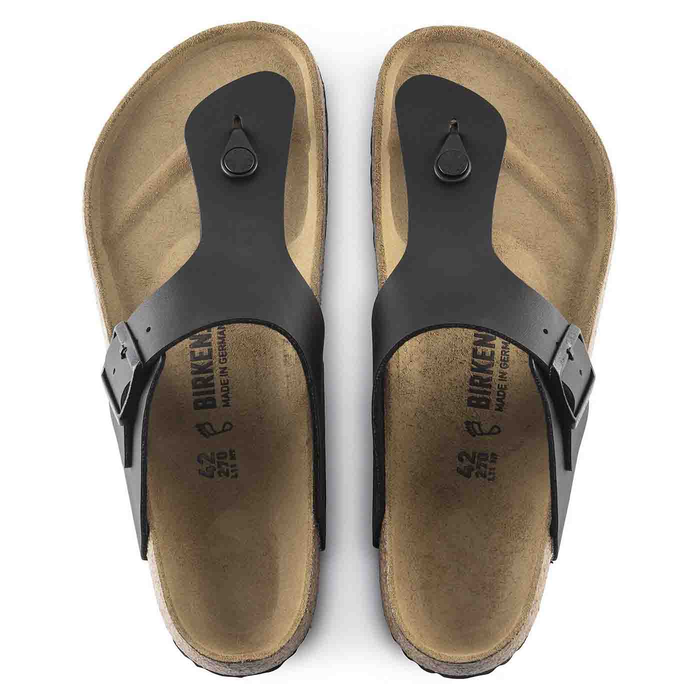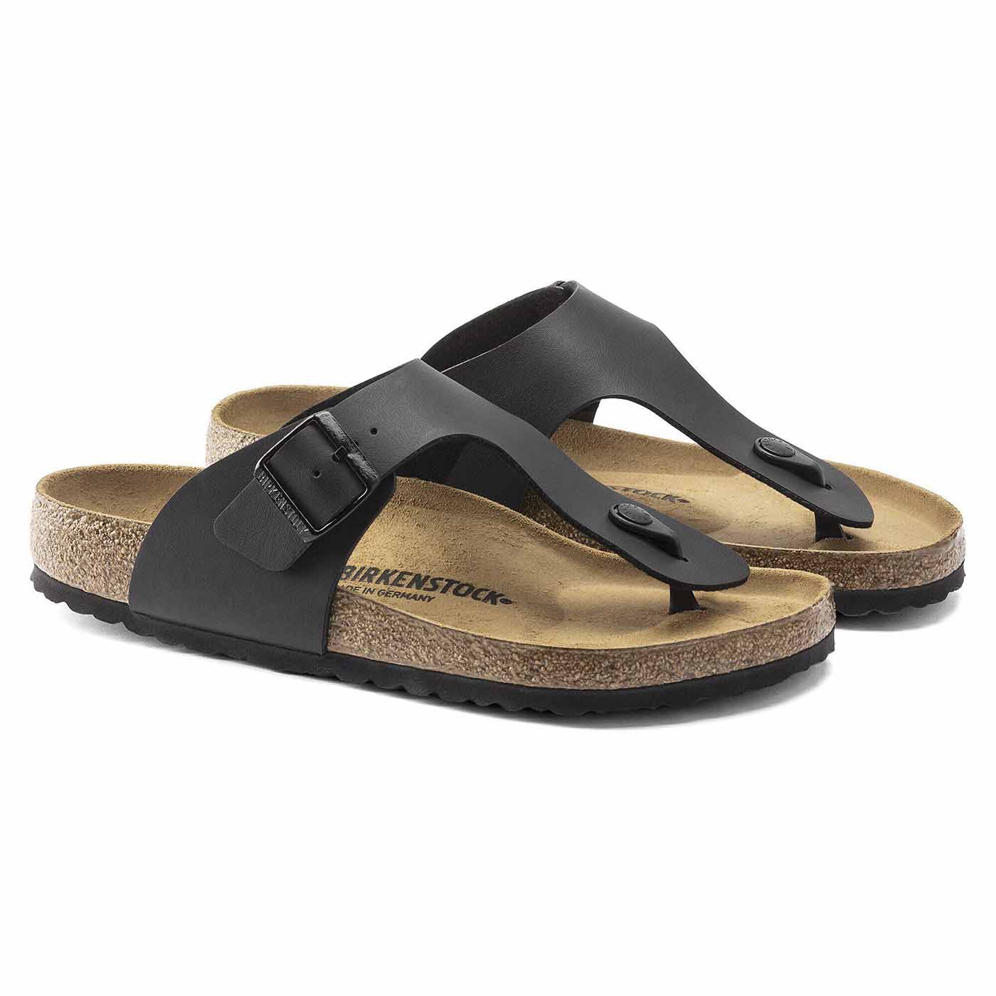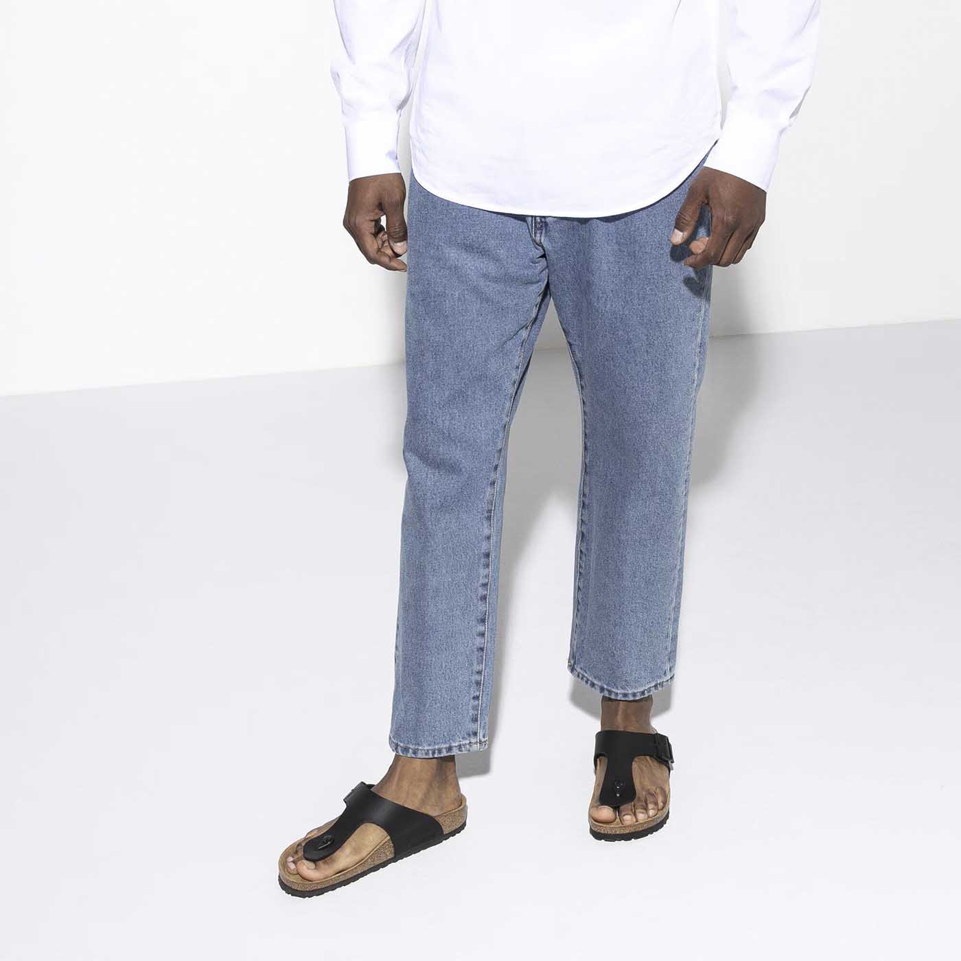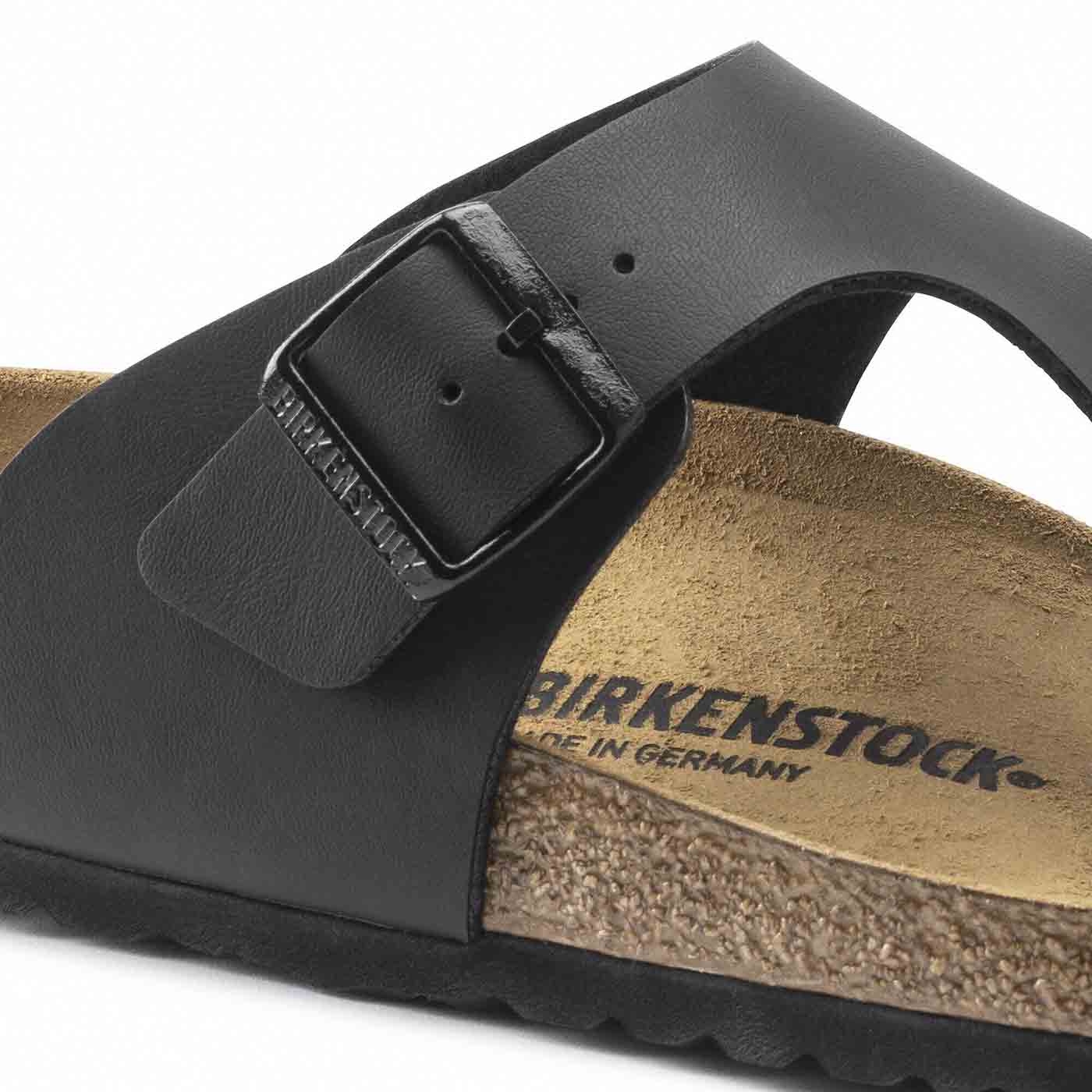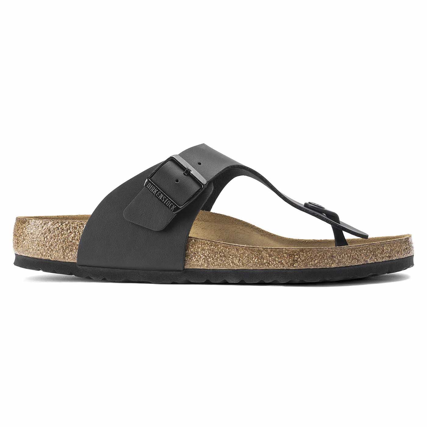 The BIRKENSTOCK Ramses is the men’s version of the popular Gizeh thong sandal. The slightly wider strap lends this sandal a strikingly masculine appearance. The upper is made from the skin-friendly, hard-wearing synthetic material Birko-Flor®.