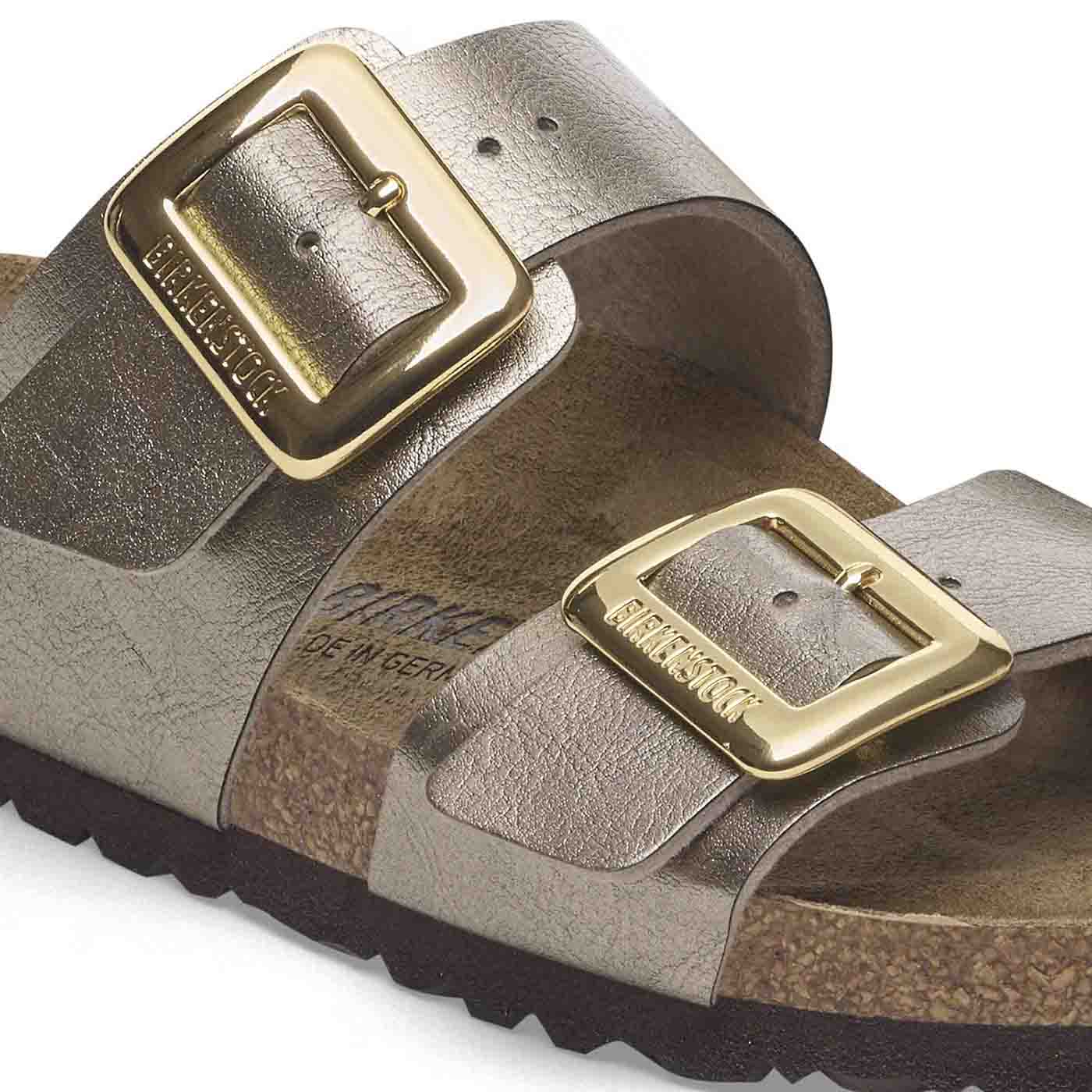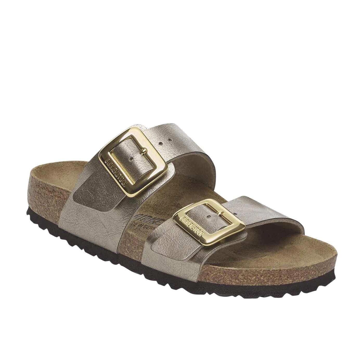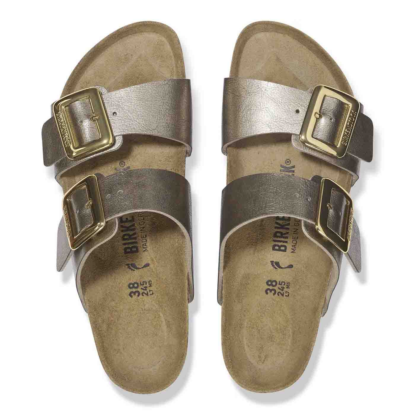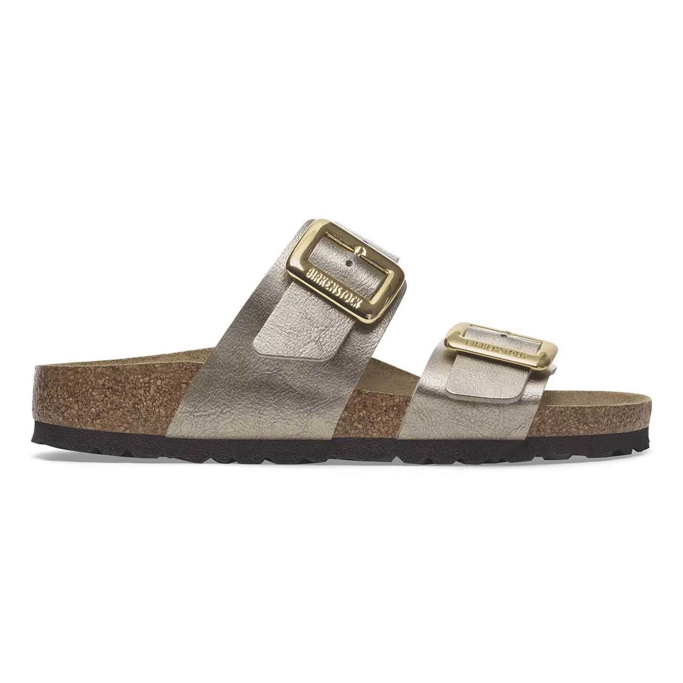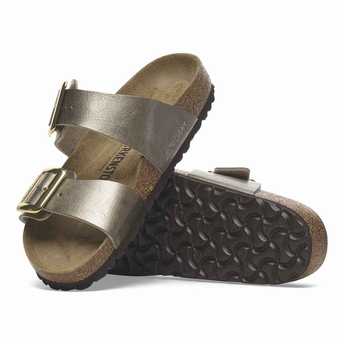 The Birkenstock Sydney proves that fashion and functionality can go hand in hand. With its two simple straps, it’s a real hit with women who want both high fashion and comfort. This sandal version has a silky sheen finish. The shiny, gently rounded padded buckles are especially eye-catching. The upper is made from the skin-friendly, hard-wearing synthetic material Birko-Flor.