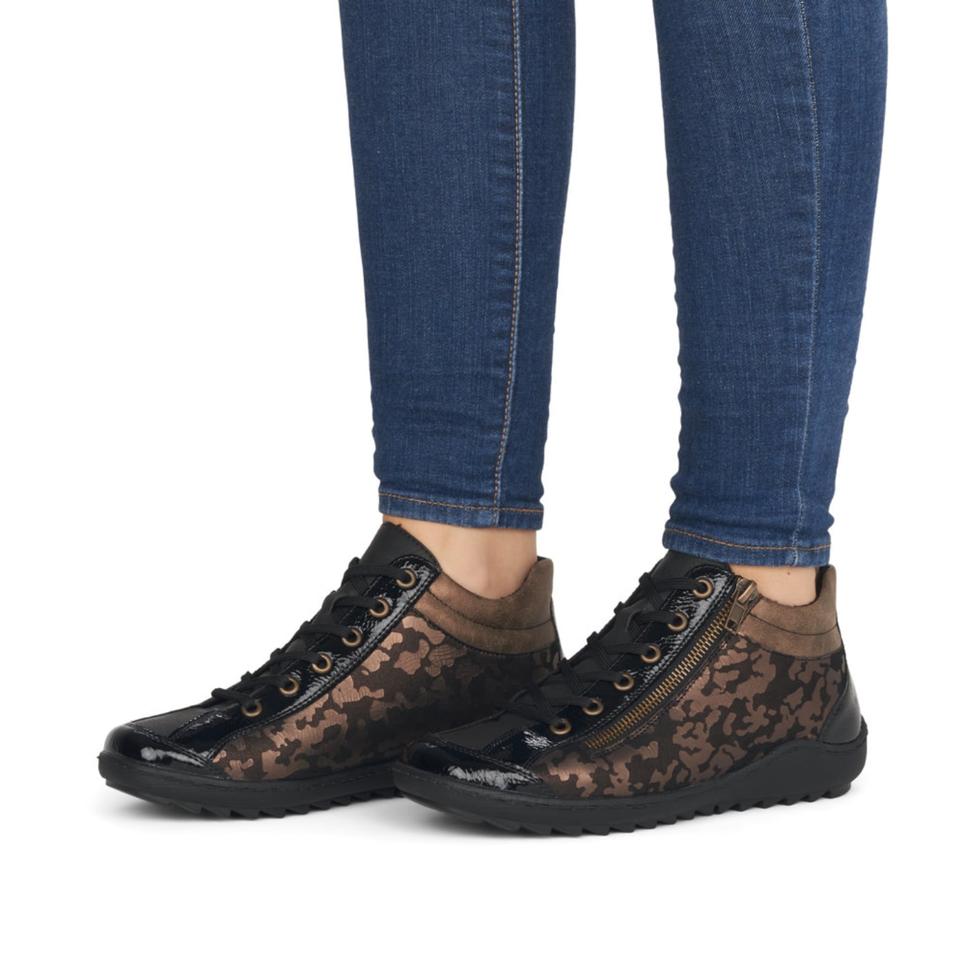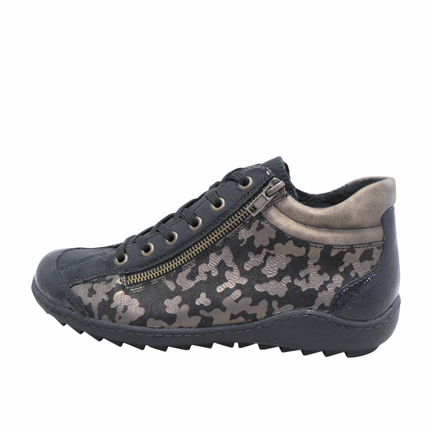 Stylish or comfortable? Why or? These comfortable beige brown lace-up shoes by Remonte impress with a cool look and functionality. The lacing complements the zipper for functionality and comfort. A flexible and cushioning profile sole and the exchangeable footbed are further arguments for this model.