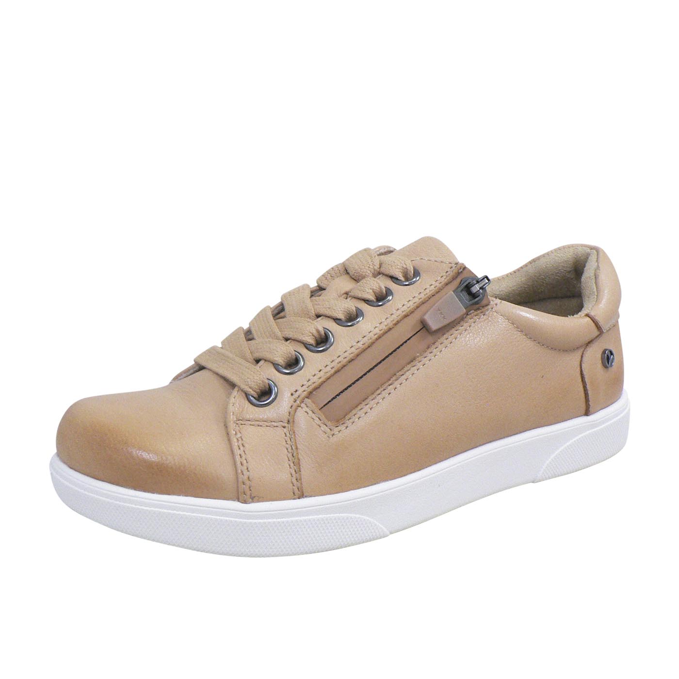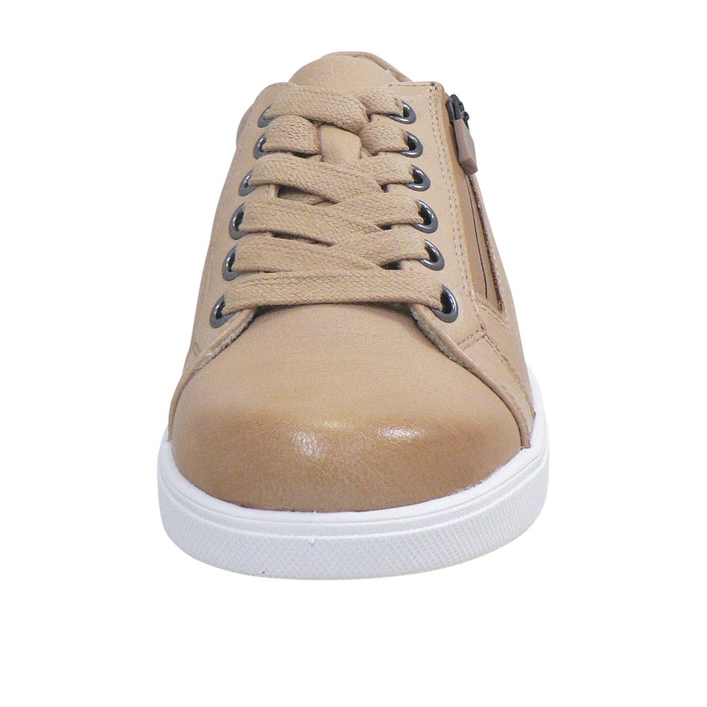 The Revere Brisbane in fawn is a sleek leather sneaker designed for everyday comfort and effortless style. Crafted from premium white leather, it features a clean, modern silhouette that pairs easily with casual or smart outfits. A lace-up front ensures a secure fit, while the convenient side zip allows for easy on-and-off wear. Built with Revere’s signature comfort technology, it offers excellent cushioning, support, and a removable footbed for customizable fit or orthotics. Finished with a lightweight, durable sole for reliable traction, the Brisbane is the perfect blend of practicality and timeless design for all-day wear.