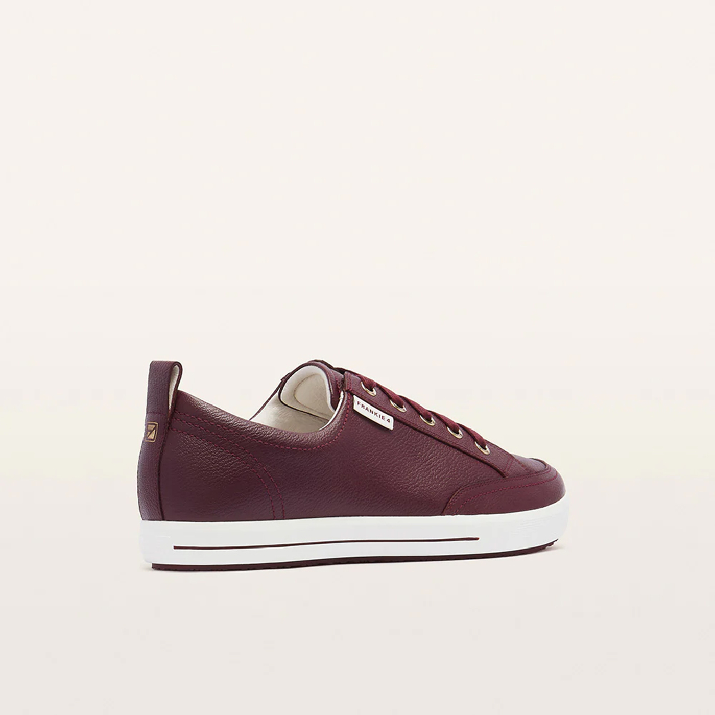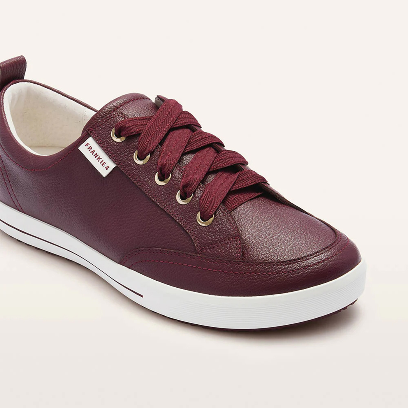 Upgrade your essentials with Ellie in Cranberry Tumbled. This refreshed favourite maintains the same fit and feel you love but with a slightly softened toe for a contemporary touch. Featuring jacquard-weave ribbon laces and additional recycled cotton laces provided for versatile styling, Ellie is a mainstay with true versatility. With a four-layer support and cushion system, custom fit options, and podiatrist-designed footbed technology, this comfortable leather sneaker combines classic style with all-day support. The perfect red sneaker for workwear and on-the-go days.
