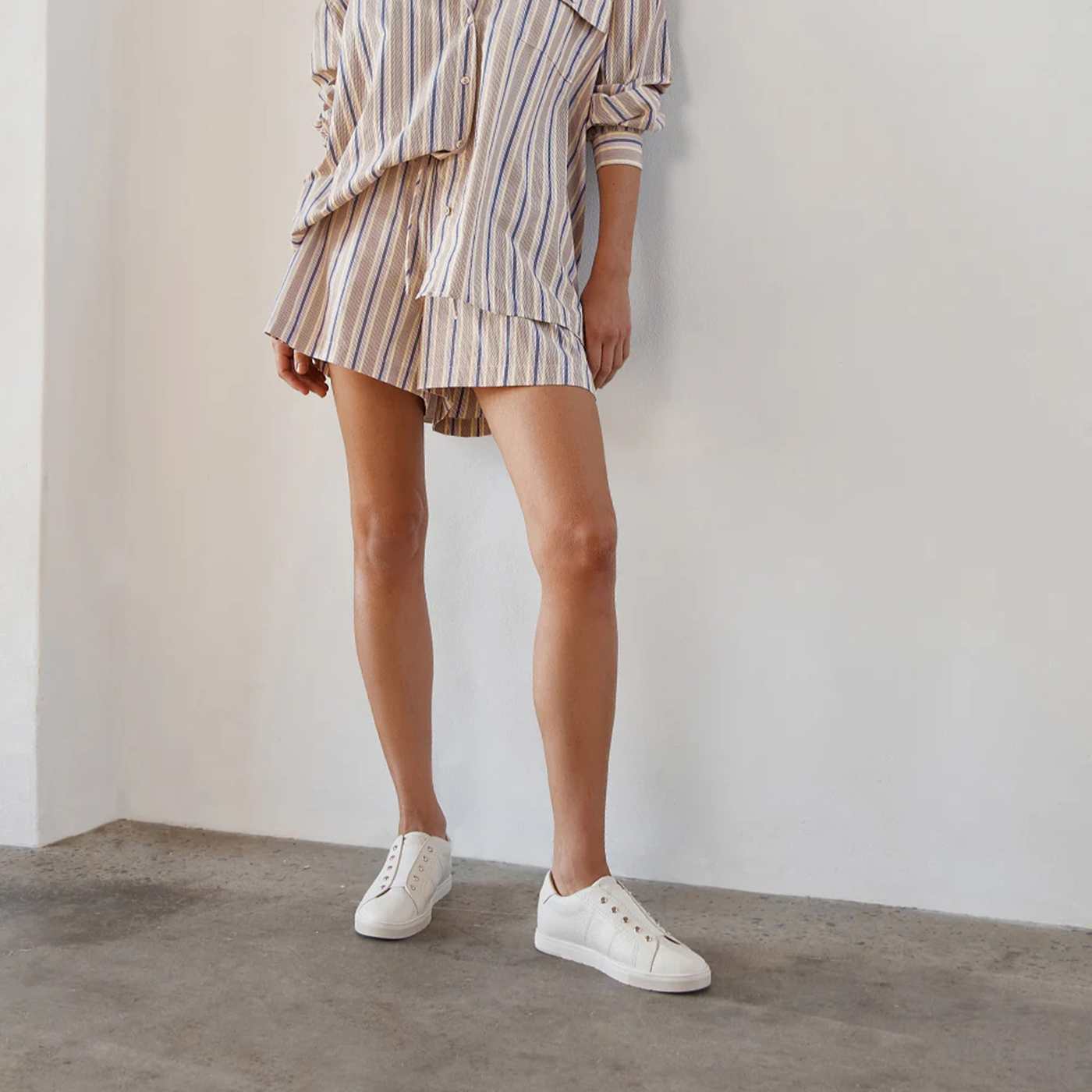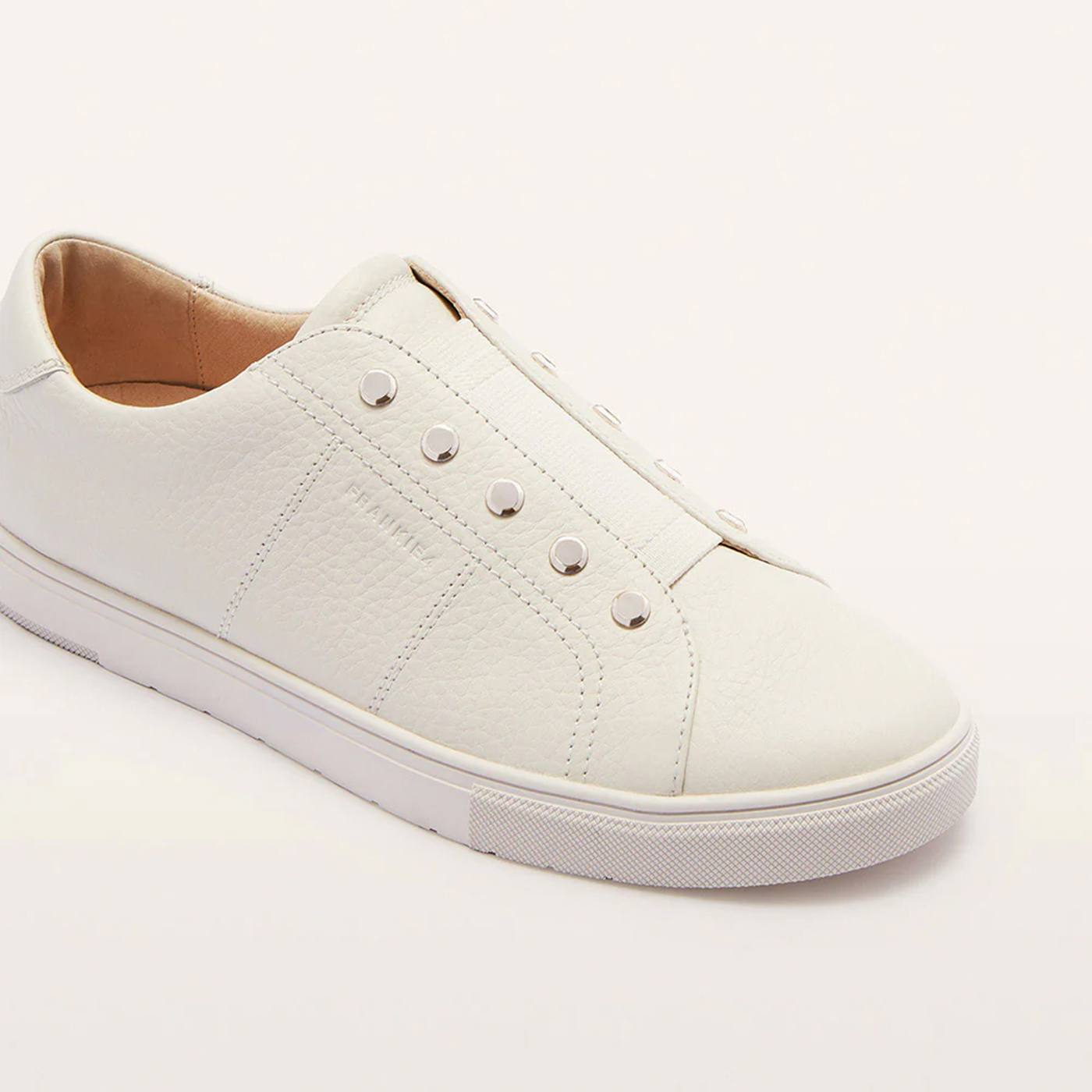 Put a polished twist on a classic with Lee in soft Chalk Tumbled. Finished in off-white tumbled leather, Lee is a lower-profile reinvention of one of our community favourites. Featuring elastic and chic stud detailing, it adds a subtle touch of polish to a classic, neutral sneaker silhouette. A slip-on design built on a lightweight sole with cushioned support, made to carry you effortlessly through the day.