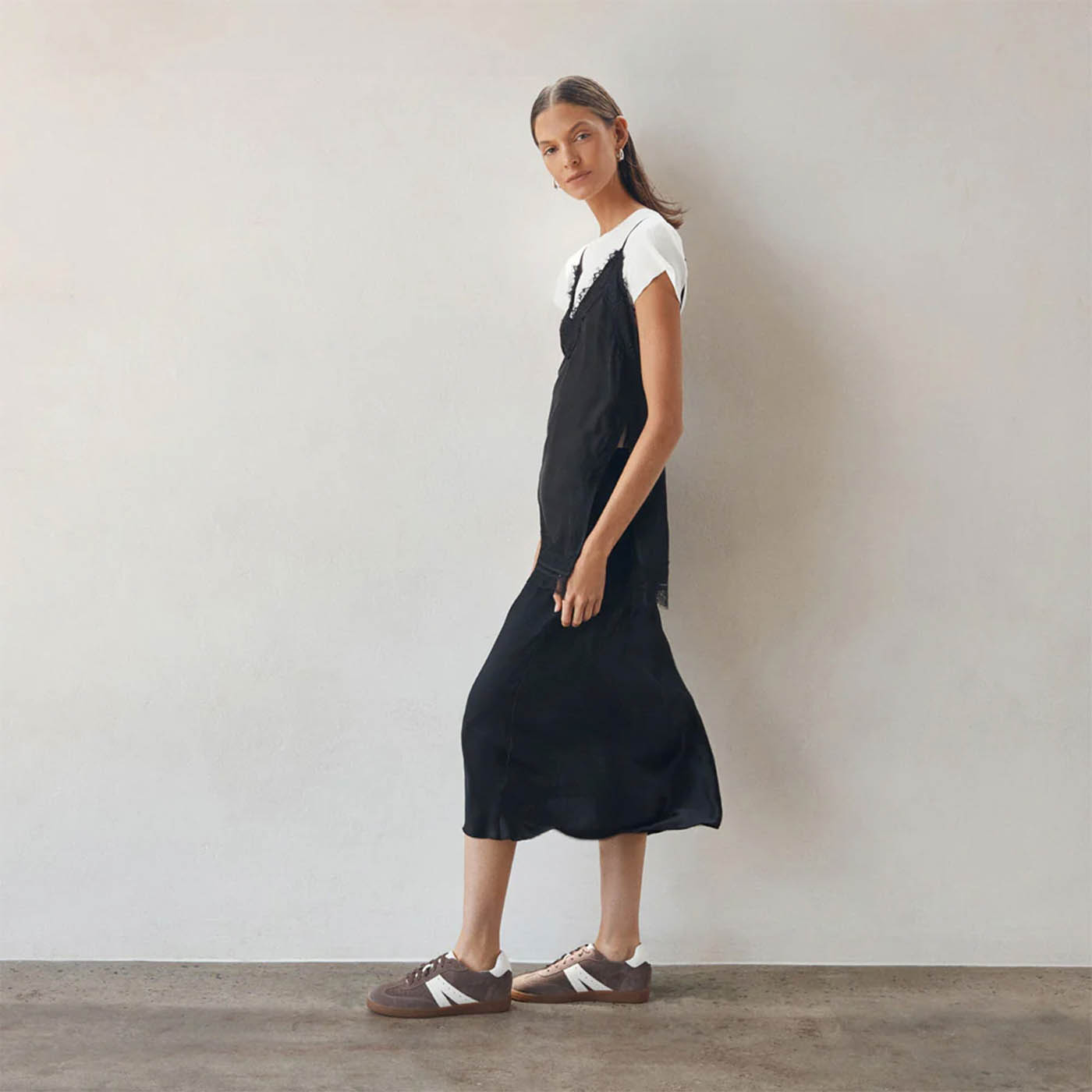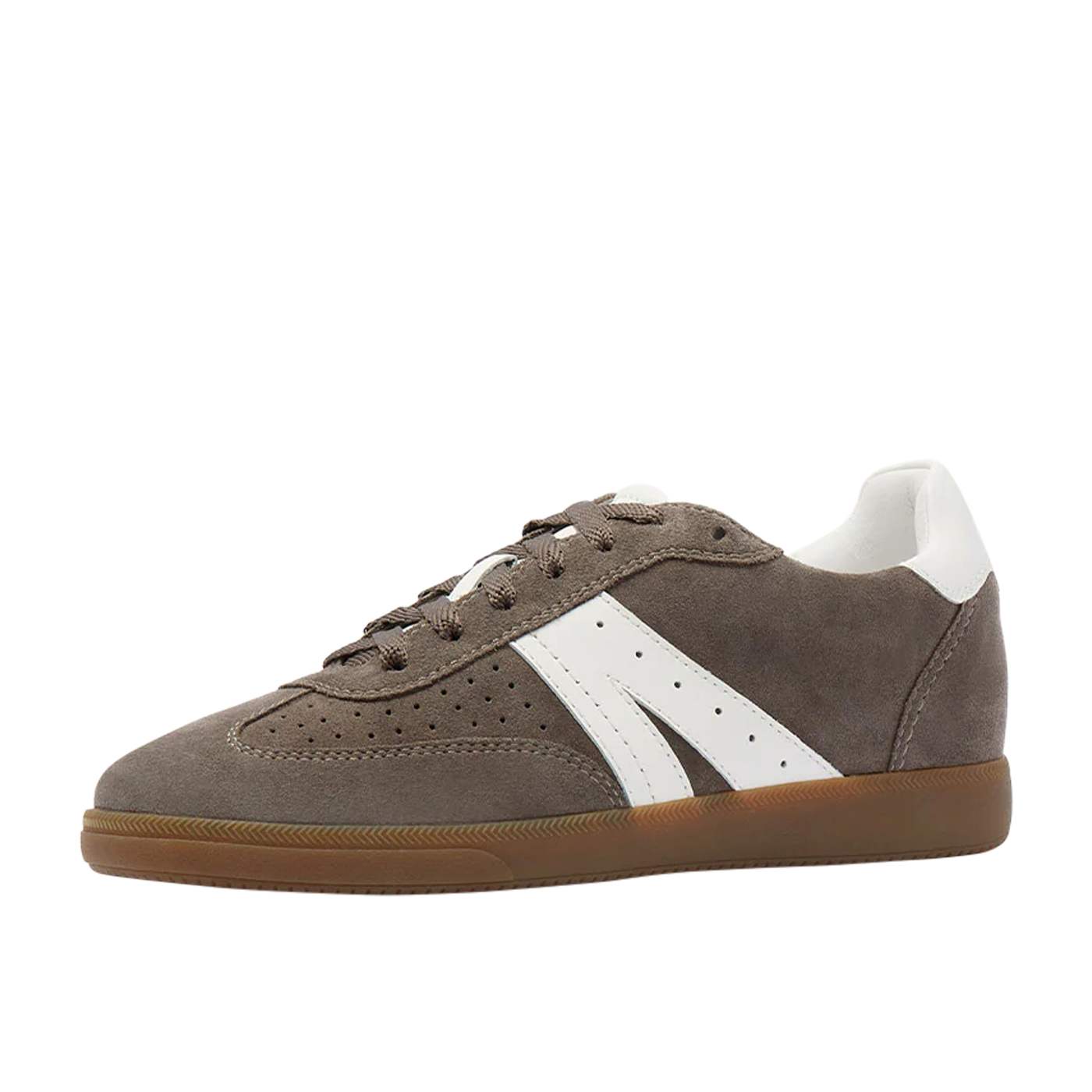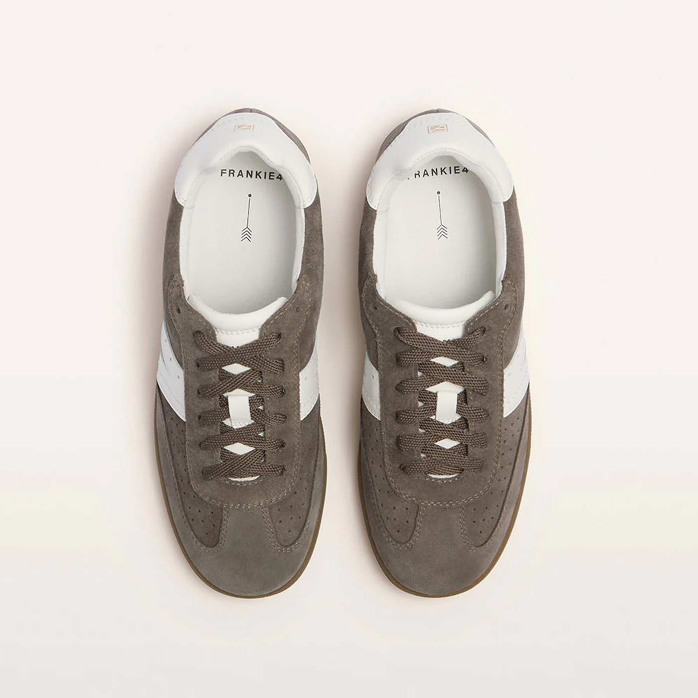 Sole-conscious, style-coded Levi in Sable Suede; more than your average sneaker. This low-profile brown sneaker features a sleek suede upper with a pop of smooth white leather accents, anchored by a retro-inspired gum sole. Lightweight and comfortable, Levi combines design that nods to iconic styles of the past with a modern twist and a versatile palette, making it a standout among neutral sneakers for any wardrobe.