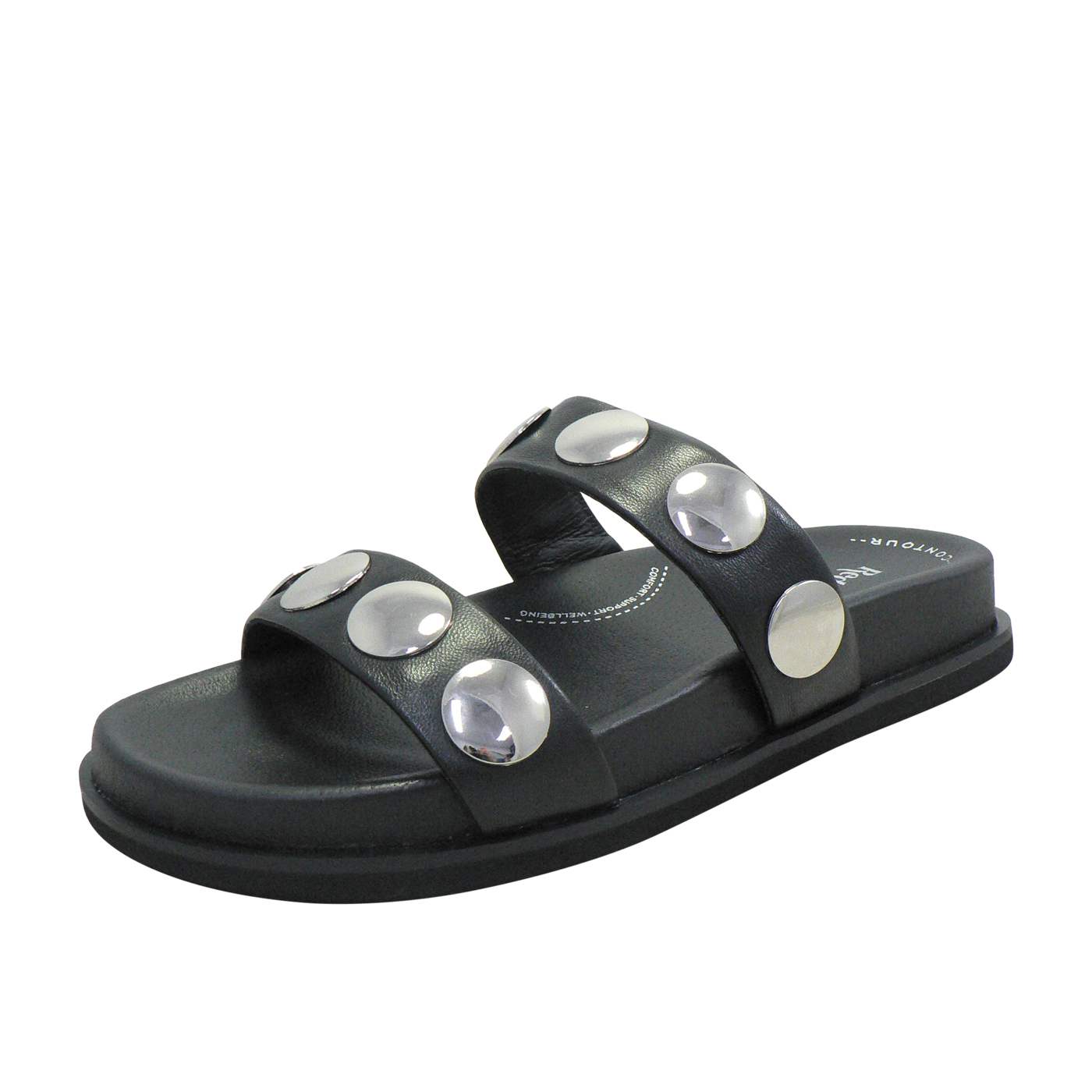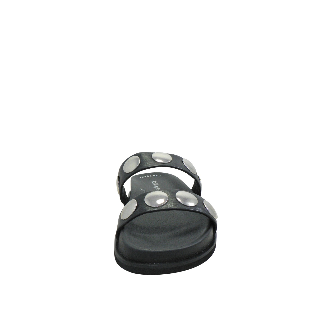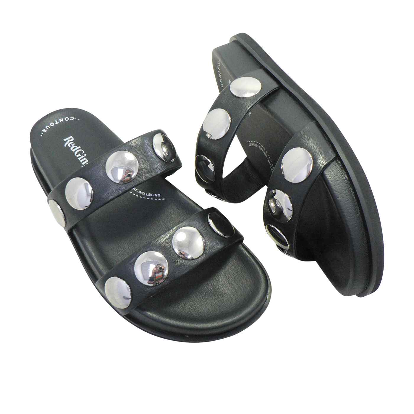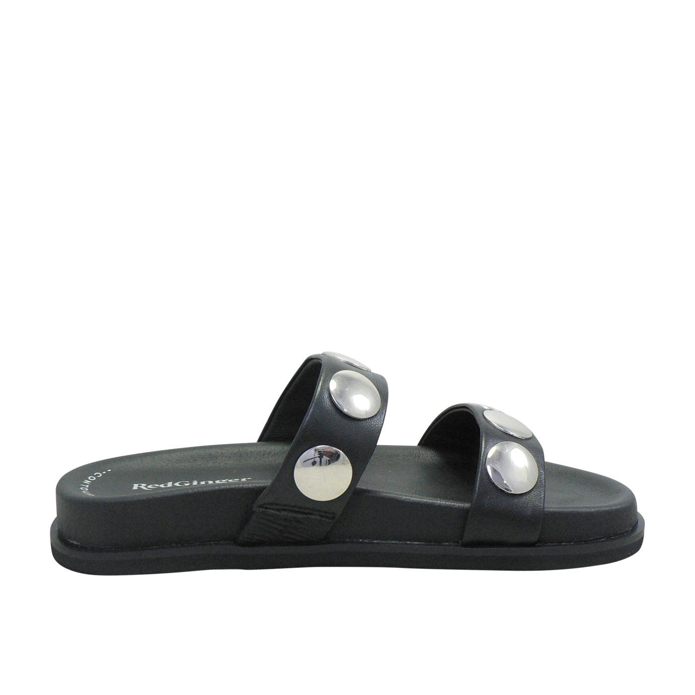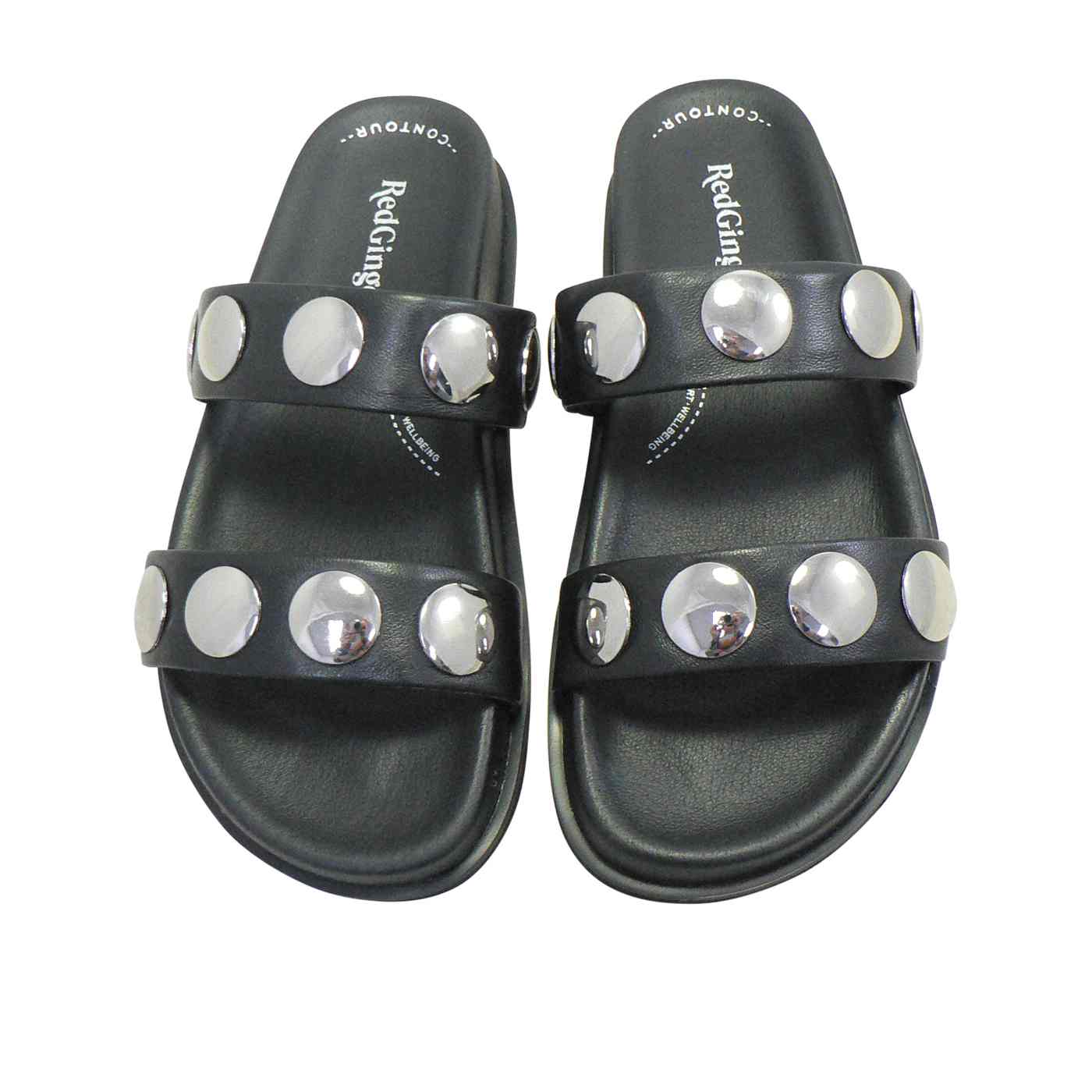 The Red Ginger Contour Gloria in Black is a bold yet versatile slide designed to elevate any outfit with effortless style. Crafted with a leather upper and leather lining, this sandal combines everyday comfort with standout detail. The oversized silver accent studs add a modern edge, while the elasticised back strap ensures a secure and flexible fit. Complete with the signature RGC cushioned footbed, Gloria makes every step feel luxuriously soft and supportive.
