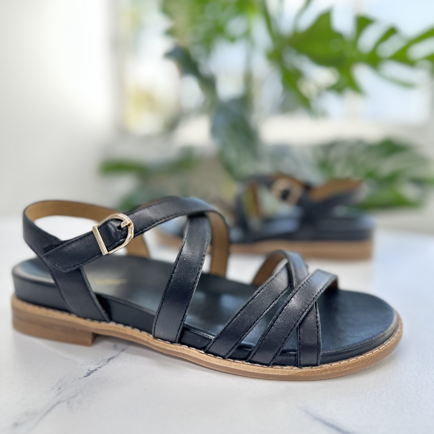 Get ready to welcome your elegant everyday essential, JENNA by Red Ginger Contour. This exquisite footwear has made its way into your collection. Its low heel, as soft as a cloud, offers unparalleled comfort, complemented by remarkable arch support. The supple, buttery leather caresses your feet, providing a luxurious sensation. Enhancing both style and security, the slender criss-crossing straps wrap around your feet gracefully. Step into the indulgent richness of cushioning provided by Jenna, gracefully balanced atop a stable low heel.