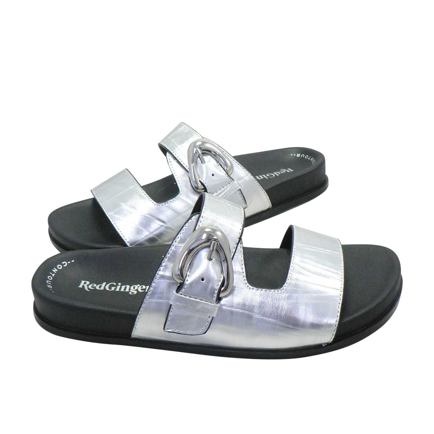The Red Ginger Contour Pixy in Silver Foil is the perfect balance of comfort and chic styling. Crafted from premium leather upper and leather lining, this slide sandal showcases a unique tumbled gold leather finish that radiates opulence and sophistication. Designed with a velcro adjustable second strap, it ensures a customized and secure fit while maintaining effortless wearability. The soft construction and luxe detailing make Pixy a versatile sandal for both casual outings and elevated ensembles.