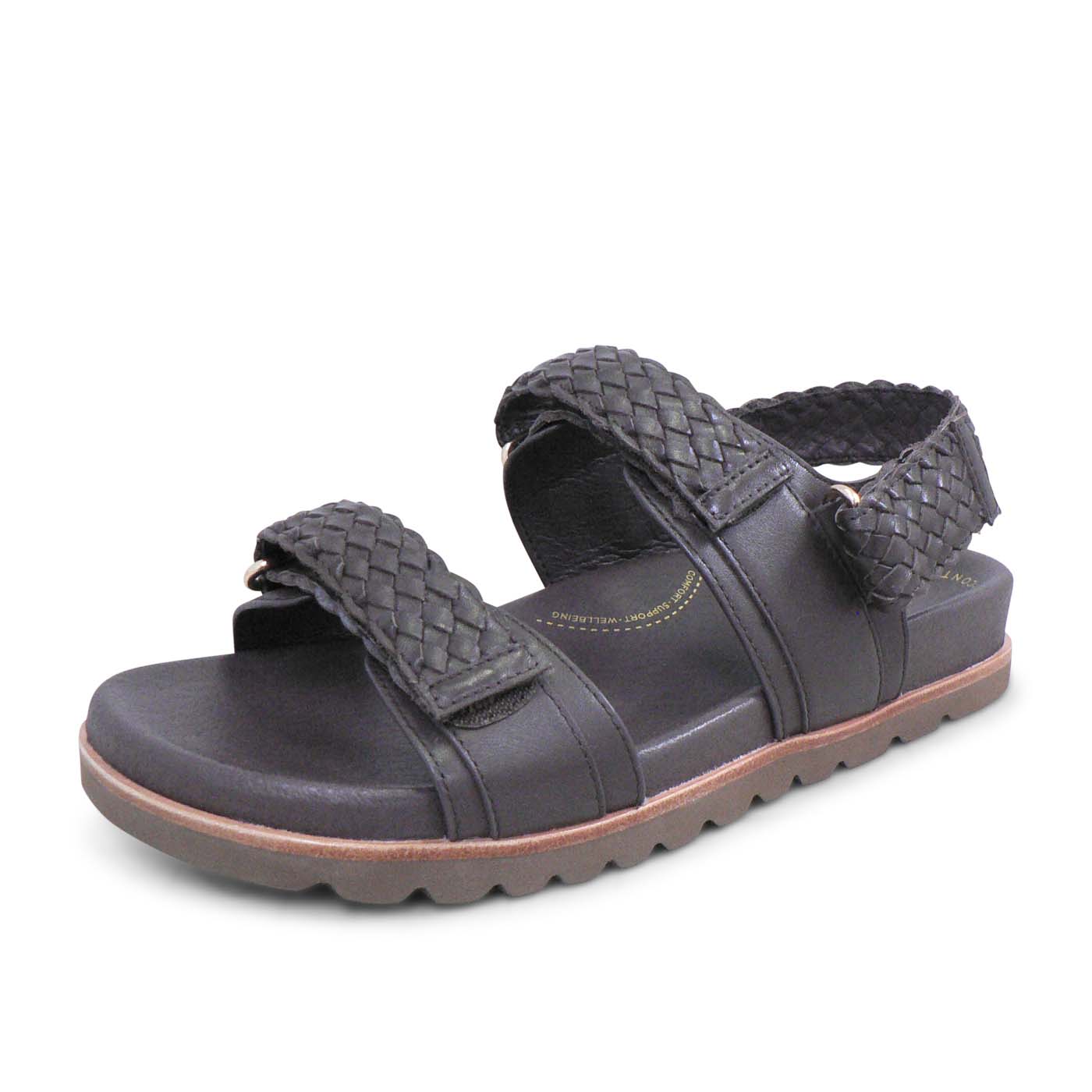 The Rena sandal features a contemporary dual-strap design highlighted by intricate braided detailing. These adjustable hook-and-loop straps ensure a customized fit, while the contoured footbed is specifically engineered for “Comfort, Support, and Wellbeing.” Finished with a durable, serrated outsole for extra grip, these sandals are as practical as they are stylish.