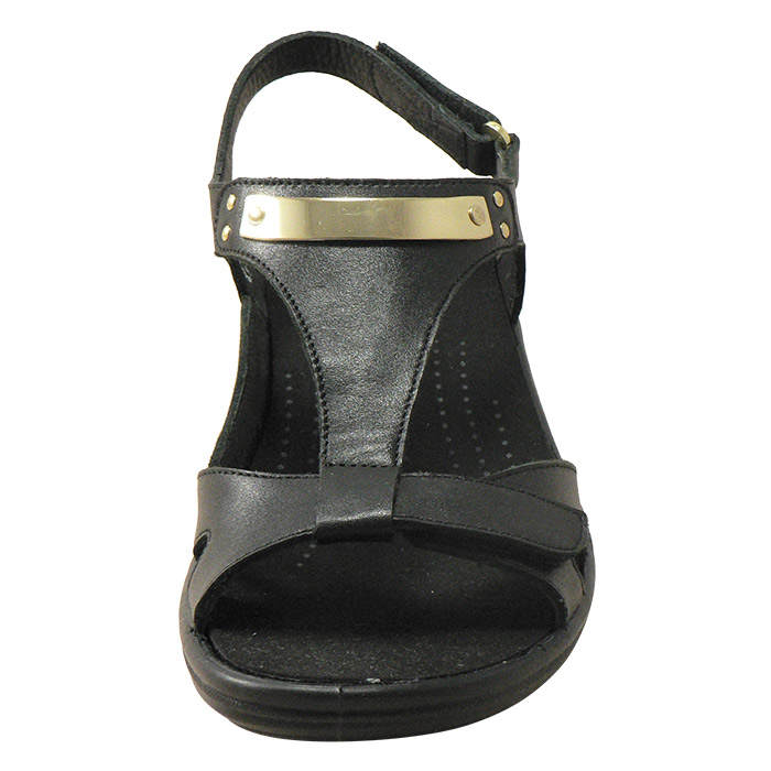 - Stylish V front back strap sandal with metal trim detail.