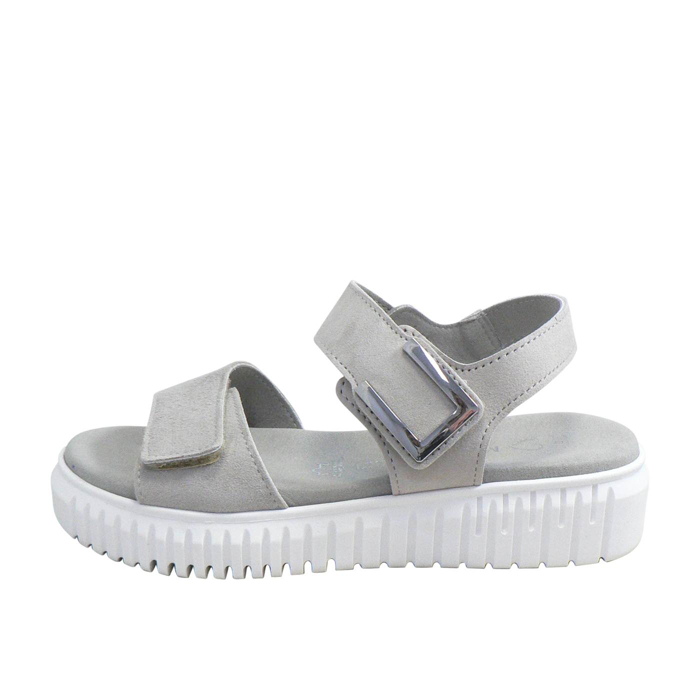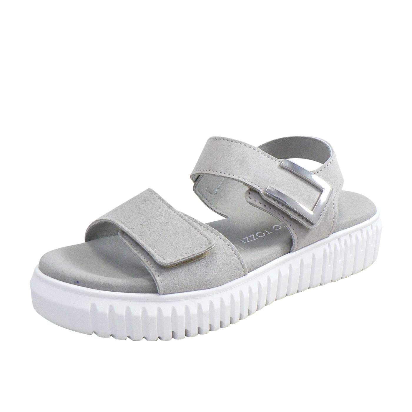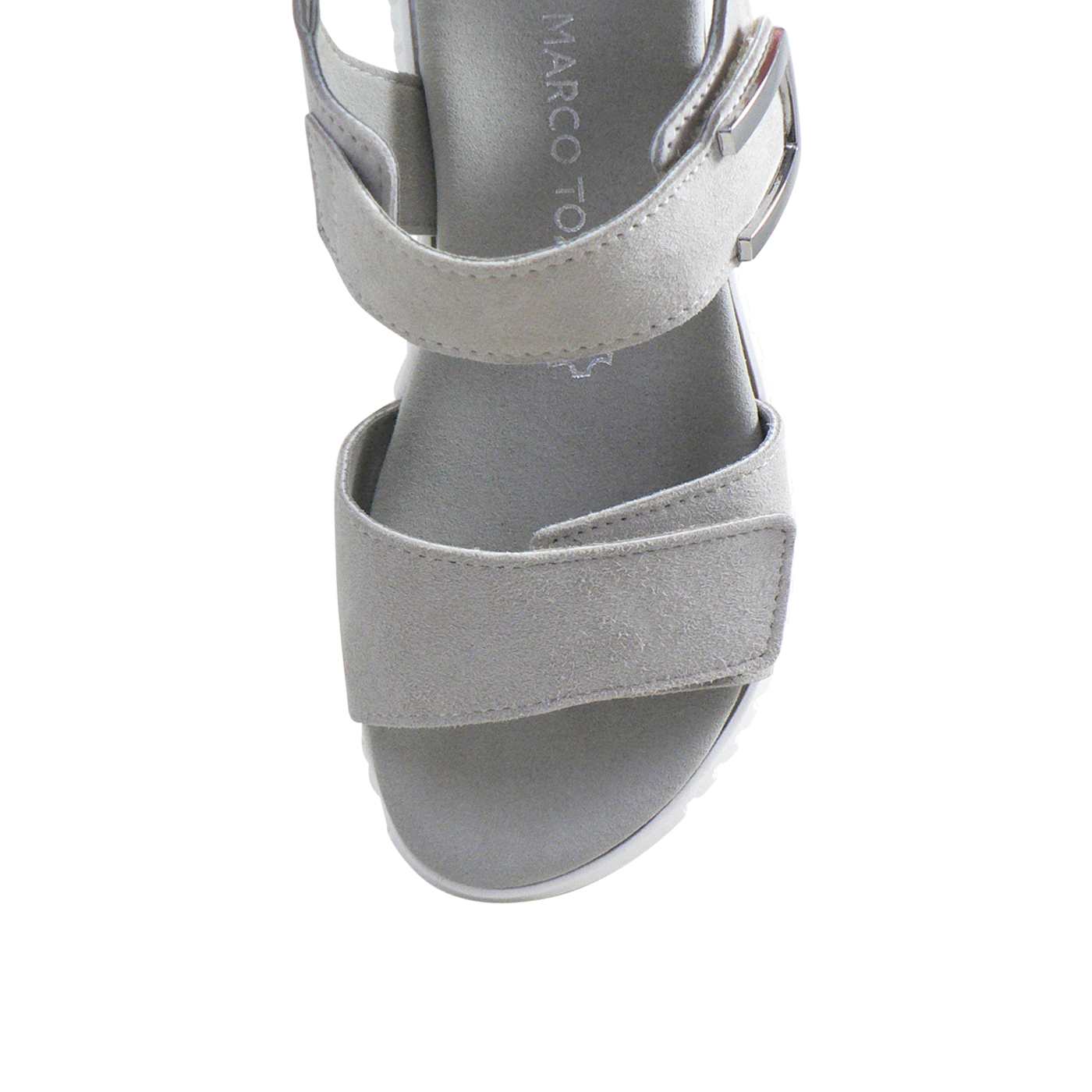 The Marco Tozzi Ella in Grey is a sleek, contemporary sandal designed for modern comfort and effortless style. Made from a 100% vegan-certified synthetic upper and lining, this minimalist design pairs a crisp white finish with a statement chunky sole for a trendy, versatile look. The Velcro strap closure allows for easy adjustment and a secure fit, while the soft cushioned insole ensures all-day wearability. Perfect for everyday wear, Ella combines practicality with fashion-forward appeal for a fresh summer essential.
