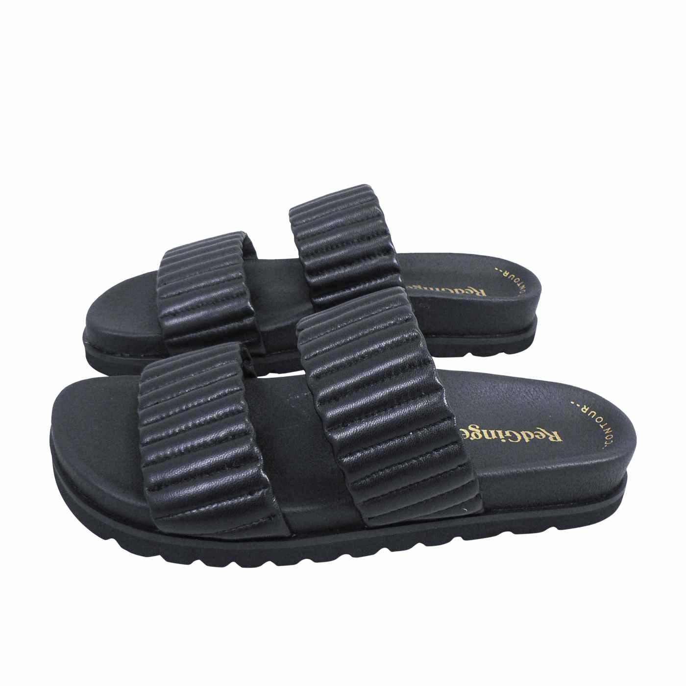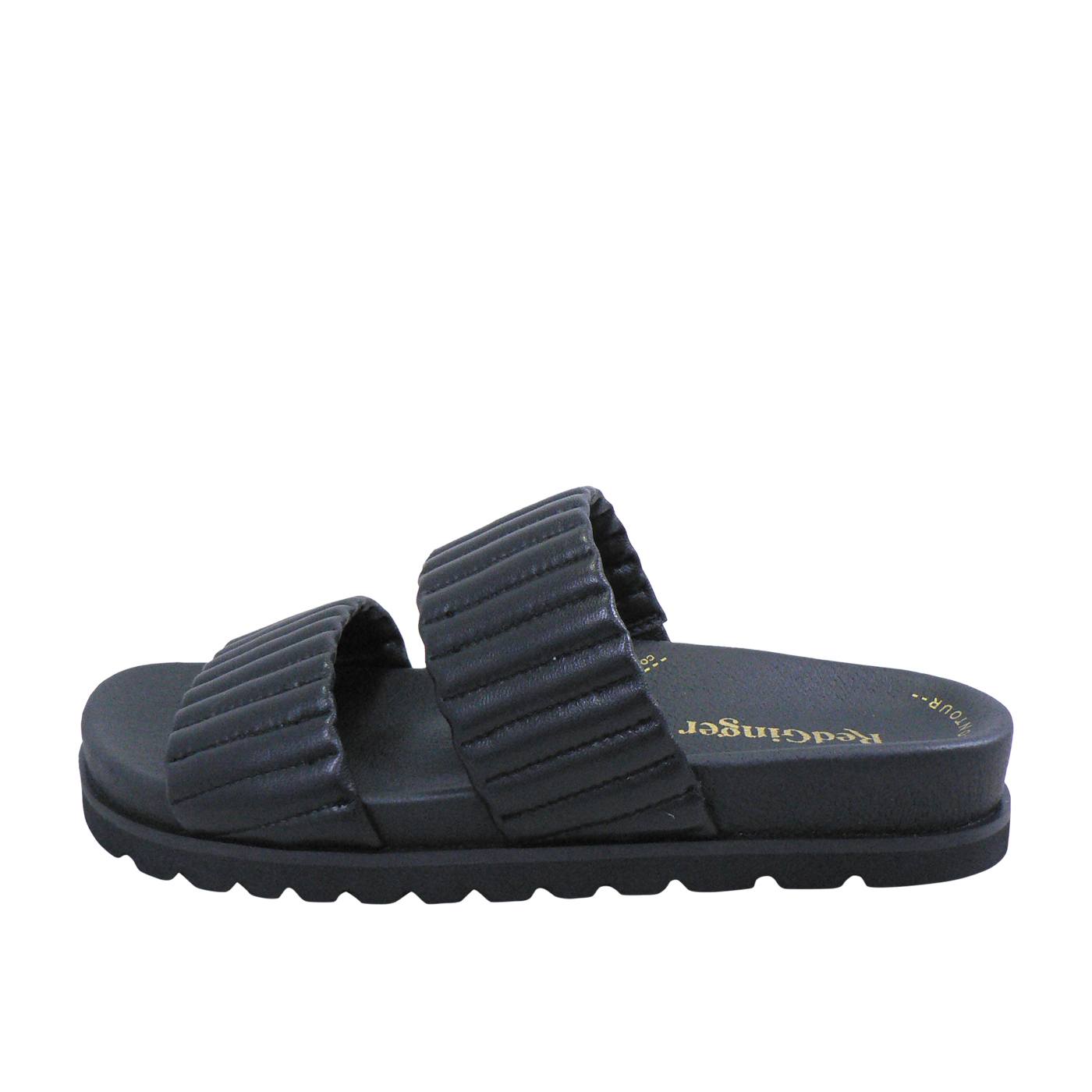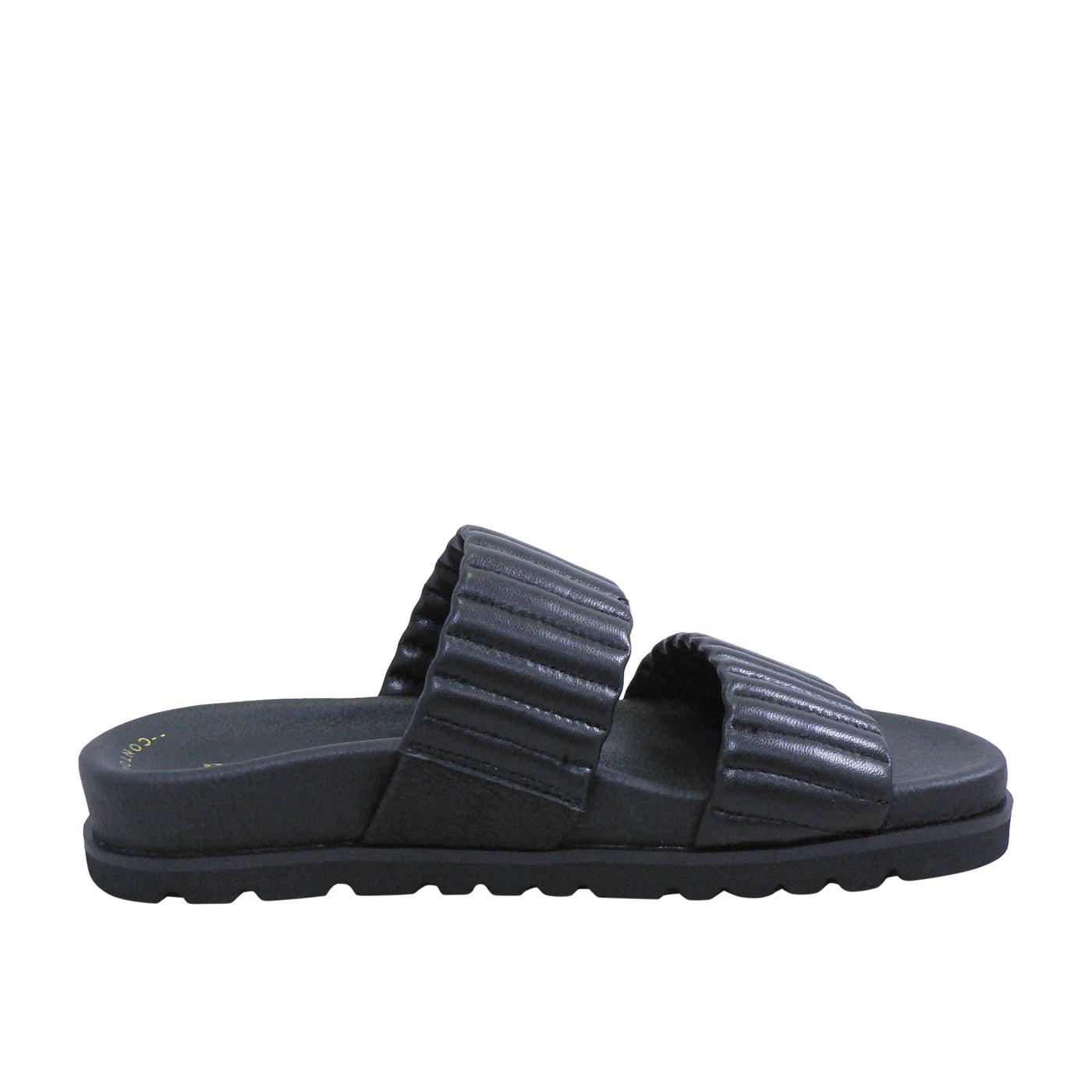Step into casual sophistication with the Finny shoe in Black, a tasteful offering from Red Ginger’s latest collection. Designed with a luxurious leather upper and lining, the shoe promises to envelop your feet in comfort and quality. The broad straps boast a quilted design, offering both style and secure footing. Below, the padded footbed cradles your soles, making every step a pleasure. Ideal for those seeking a blend of simplicity and elegance, the Finny is a versatile addition to any wardrobe.