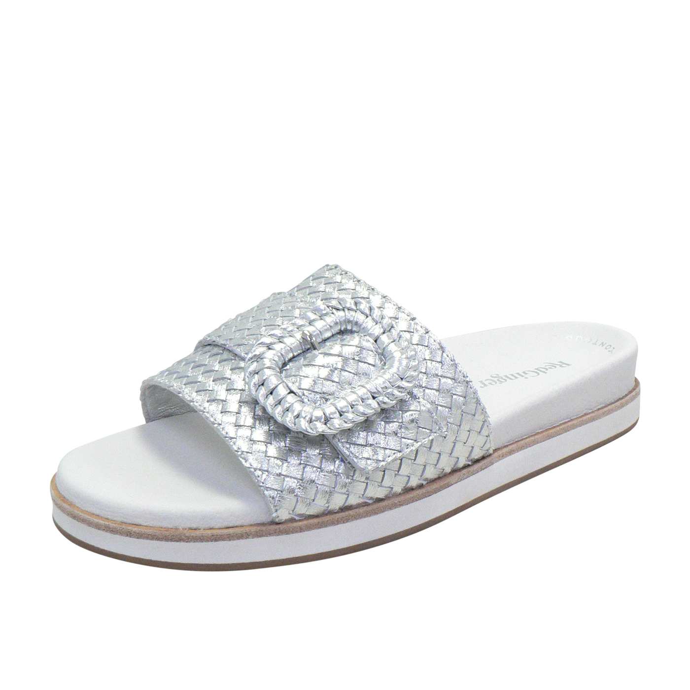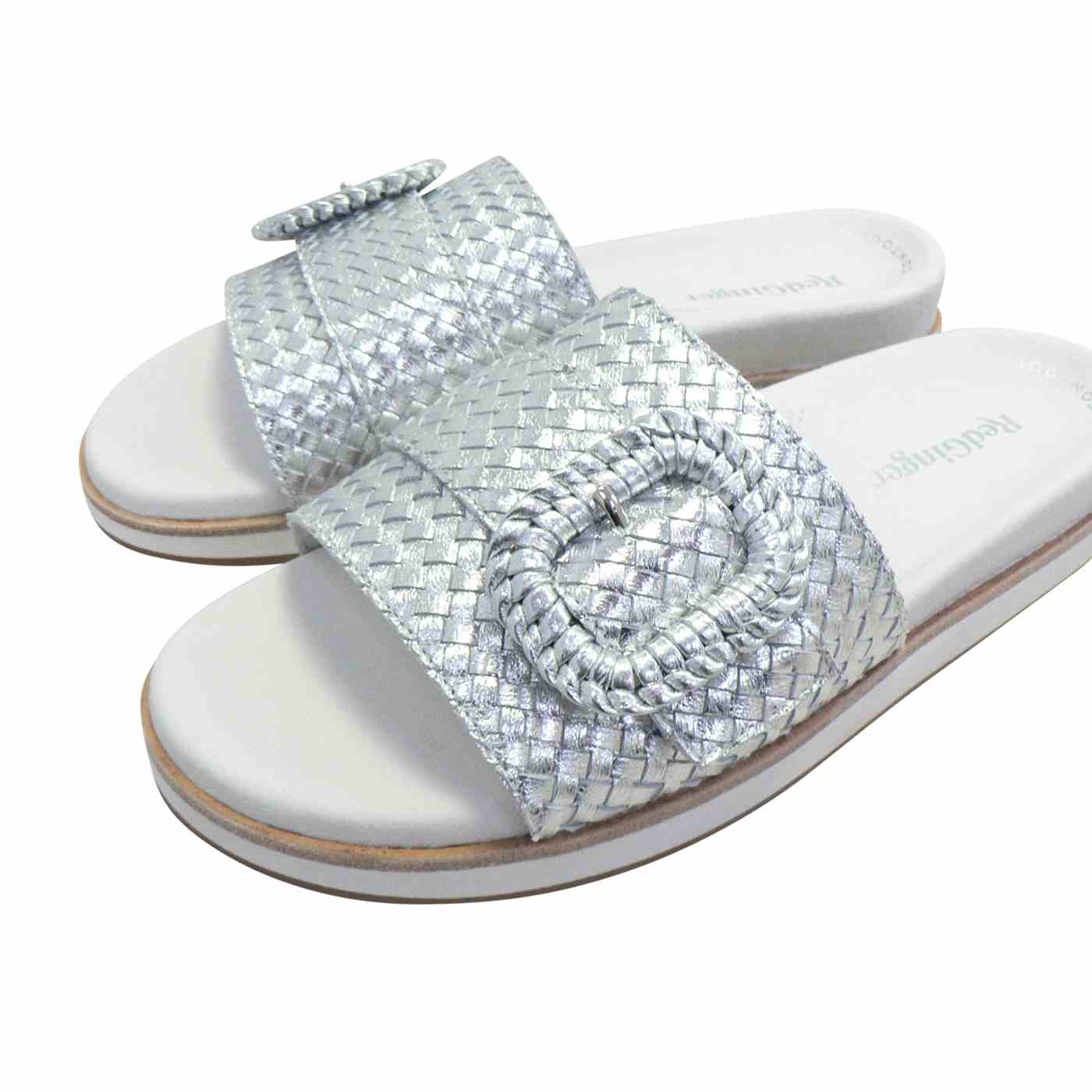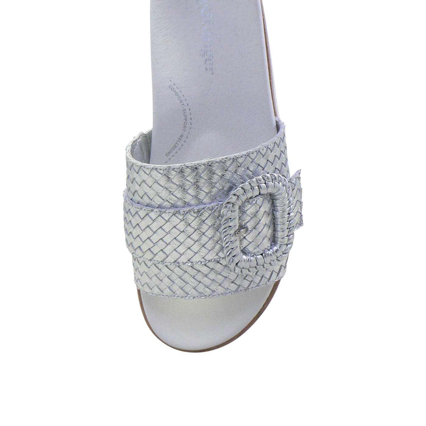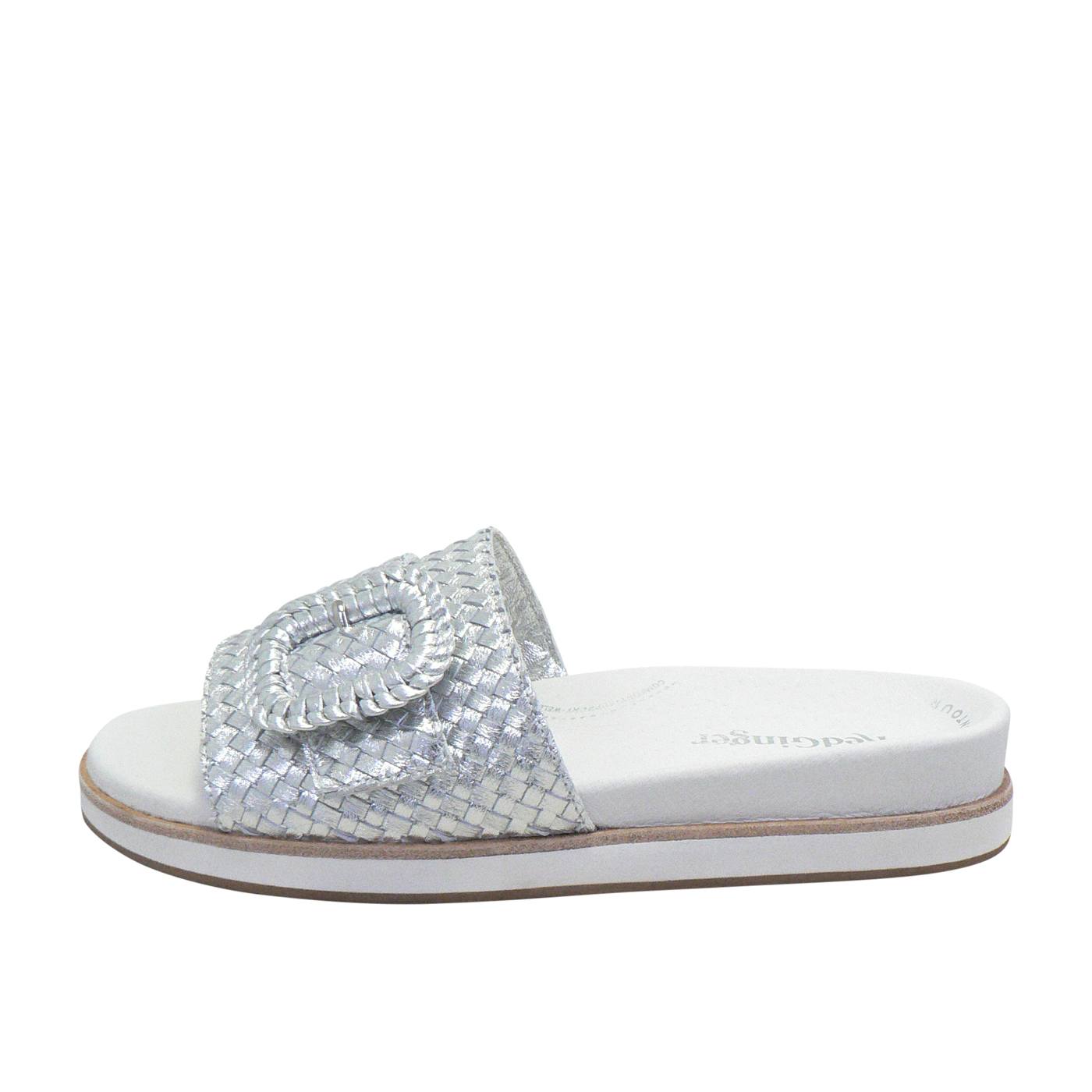 Set atop a lightweight sole with a subtly elevated profile, this easy slide is versatile enough for brunch, beach walks, or weekend errands. Finished in Silver, it’s a breath of fresh style for any wardrobe.