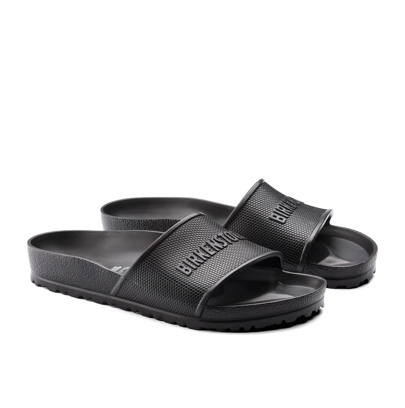 The BIRKENSTOCK Barbados is a sporty slide design with a hexagon pattern and logo lettering. Modeled on the cork sandal, this sandal is made from one piece of light, flexible and waterproof molded EVA.