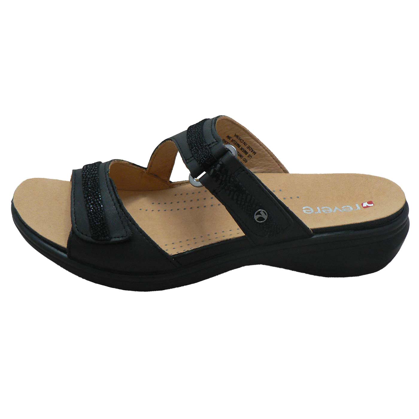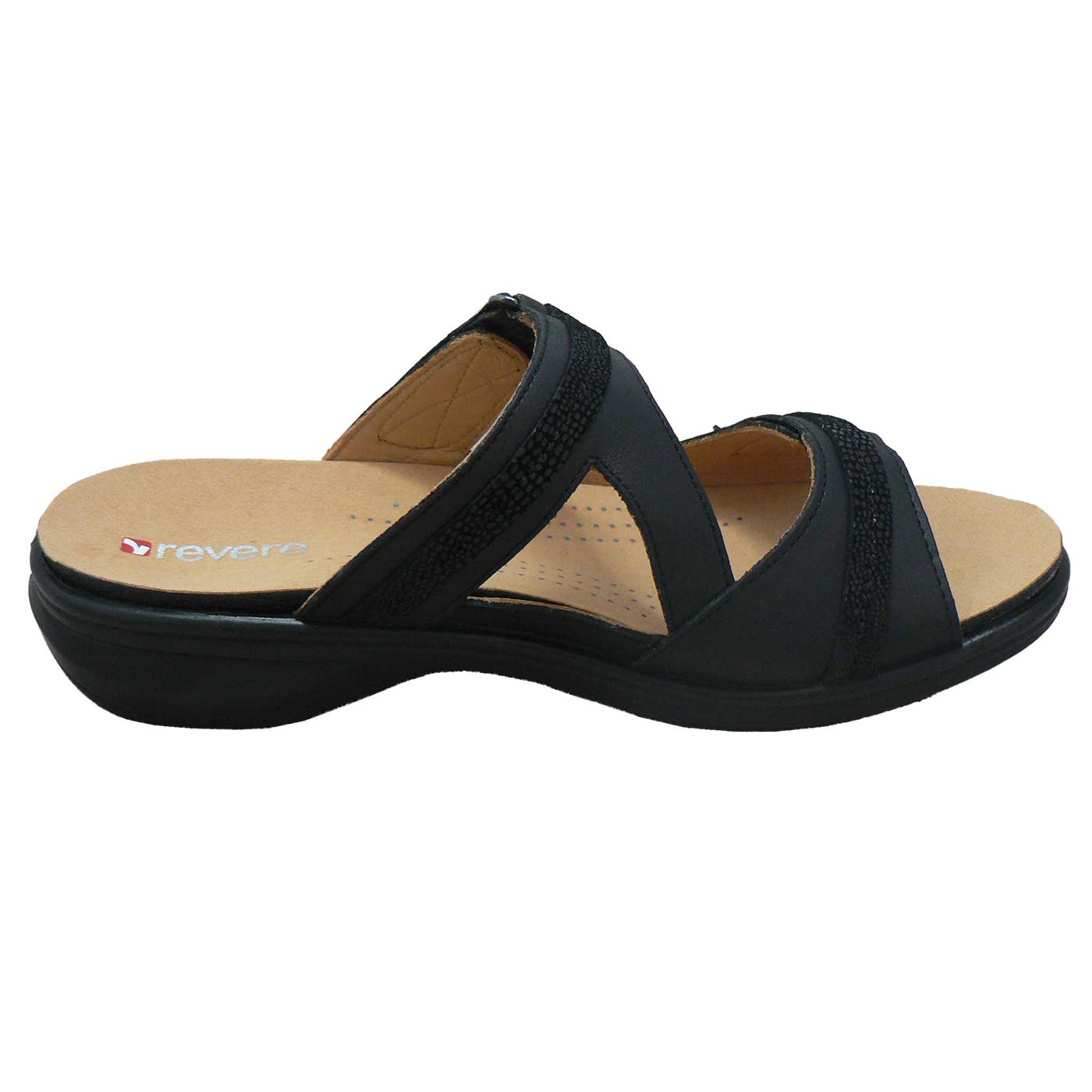 Shiny snake uppers steal the spotlight on Rio, a double-strapped women’s slide sandal with delightful detailing. Rio combines subtle adjustability with metallic accents and textured patent leather. For a look that’s anything but basic, Rio slides are the best orthotic sandals Australia has to offer.