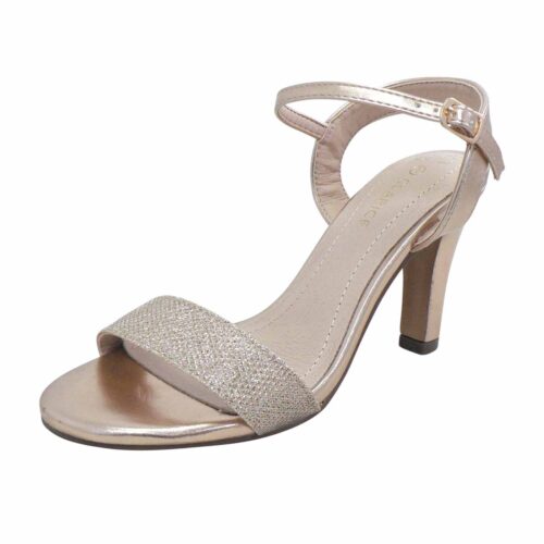 Shine brightly during your special event with the “Awesome” design by Clarice. This exquisite piece showcases a pleasantly moderate heel height, a customizable ankle strap, and glistening diamante embellishments adorning the elegant, slender crisscross toe bands.