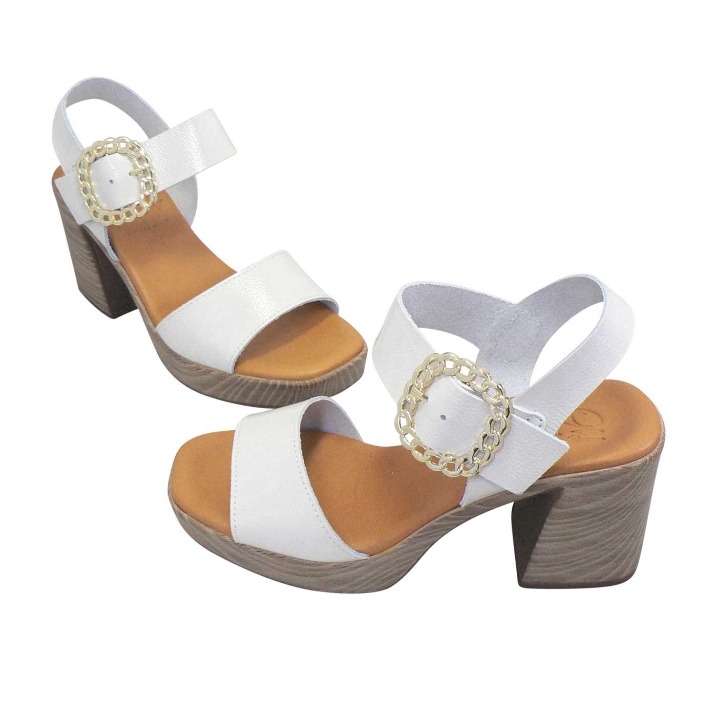 The Oh! My Sandals Quinn in Heilo is a beautifully crafted high-heel sandal that exudes sophistication and comfort. Made in Spain from premium leather inside and out, this exclusive to Suna Shoes delivers luxurious quality and timeless elegance. The soft leather upper features a subtle shimmer finish complemented by a statement chain buckle, while the cushioned footbed and block heel provide stability and ease with every step. Perfect for adding refined style to any outfit, Quinn is where craftsmanship meets modern glamour.