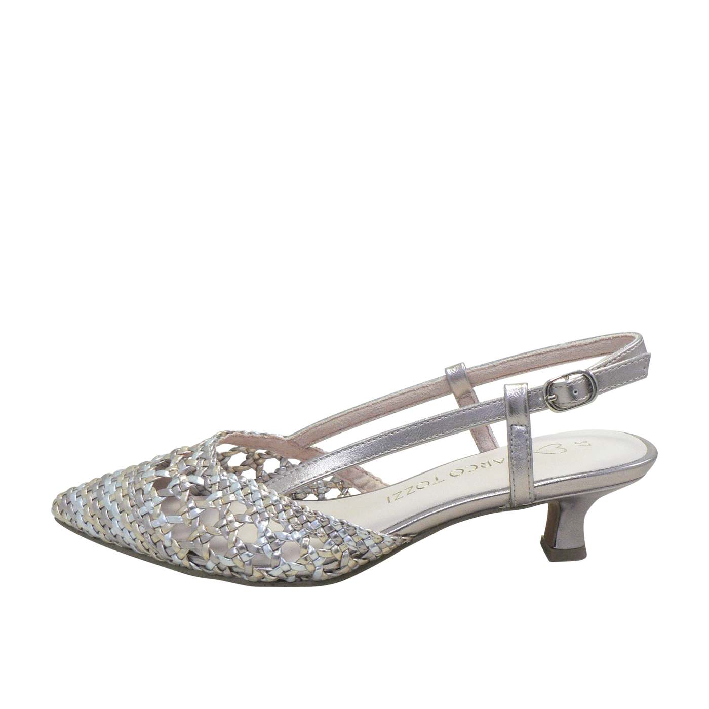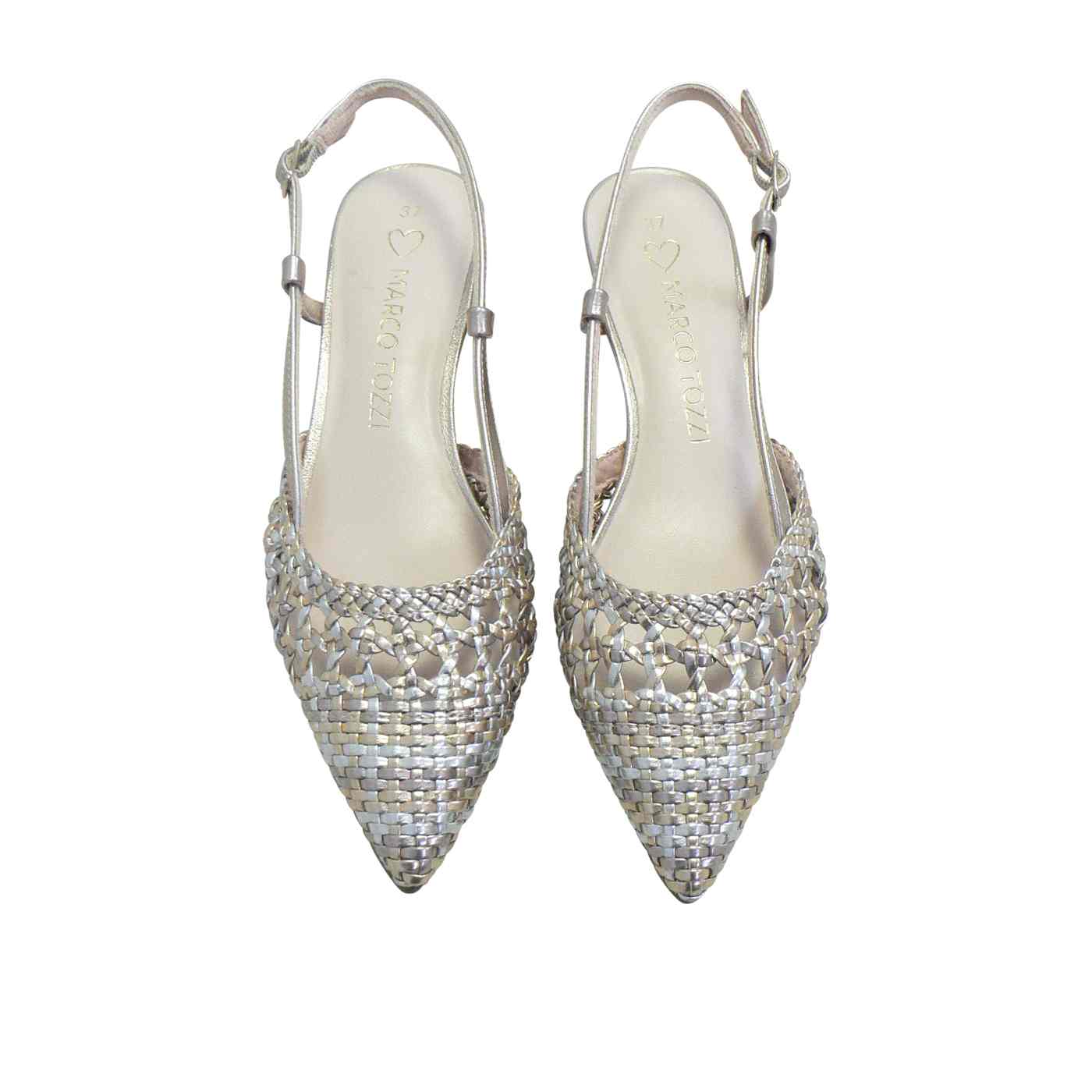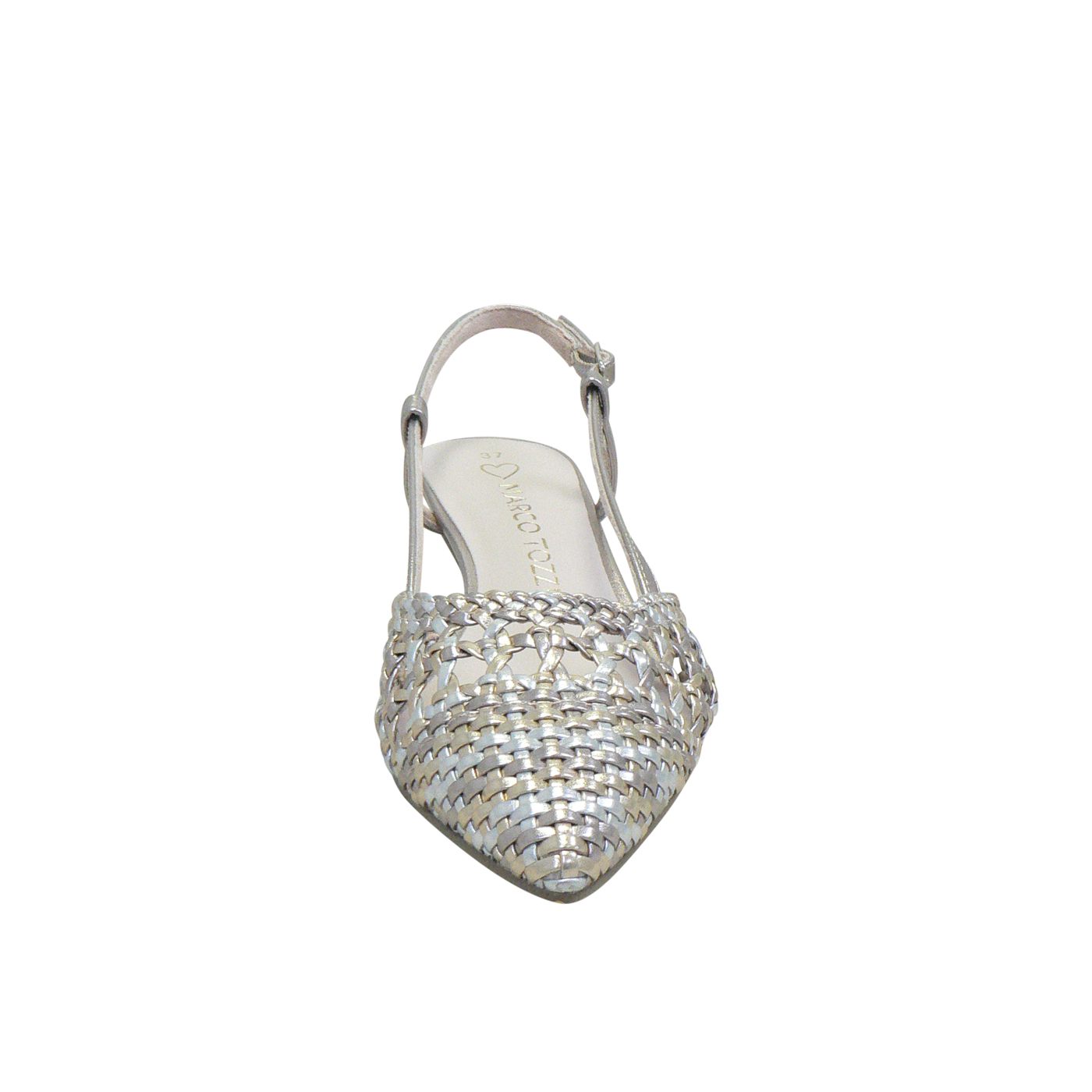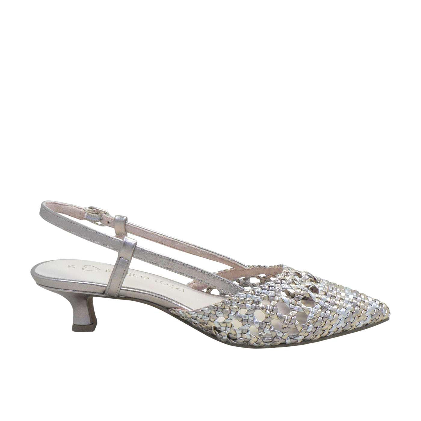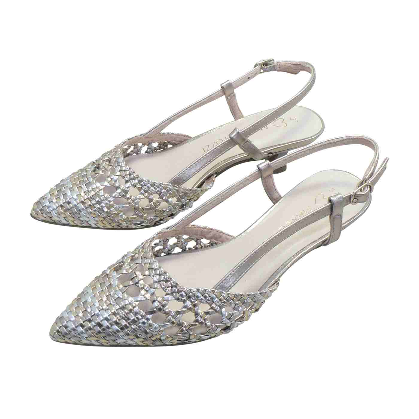 Beautiful woven metallic upper for a refined look