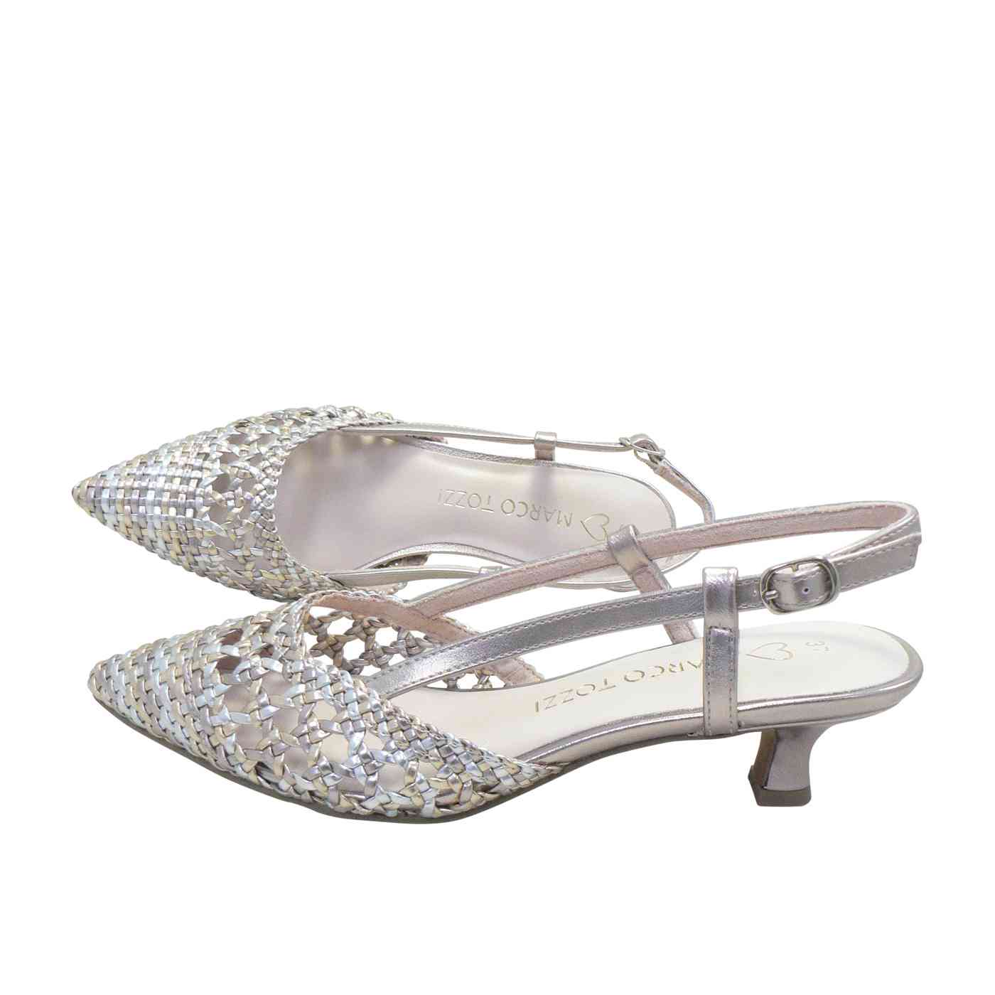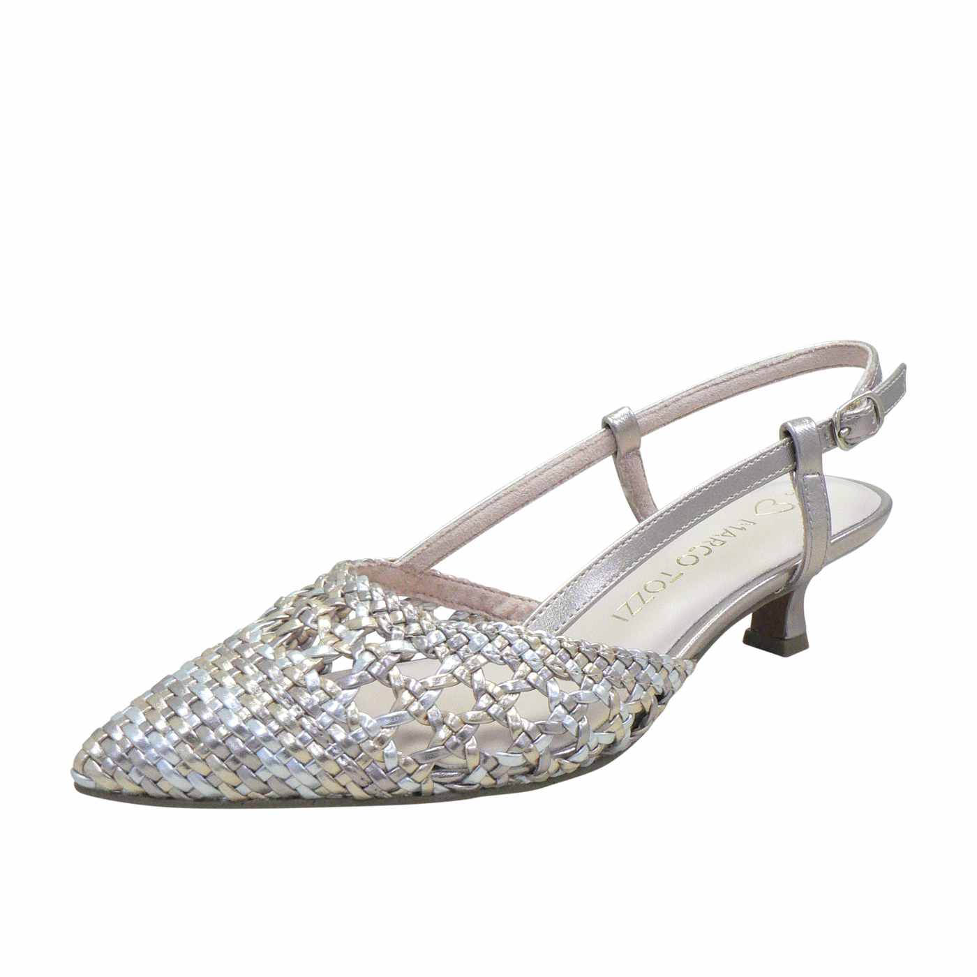 The Marco Tozzi Violet in Rose Metallic Combo brings together elegance and comfort in a beautifully woven slingback design. Its shimmering metallic tones and intricate woven texture create a sophisticated look that catches the light with every step. Designed with extra padding in the insole, Violet ensures exceptional comfort, allowing you to move gracefully all day or night. Perfect for weddings, parties, or any occasion that calls for effortless glamour, this low-heeled style combines modern artistry with timeless charm.