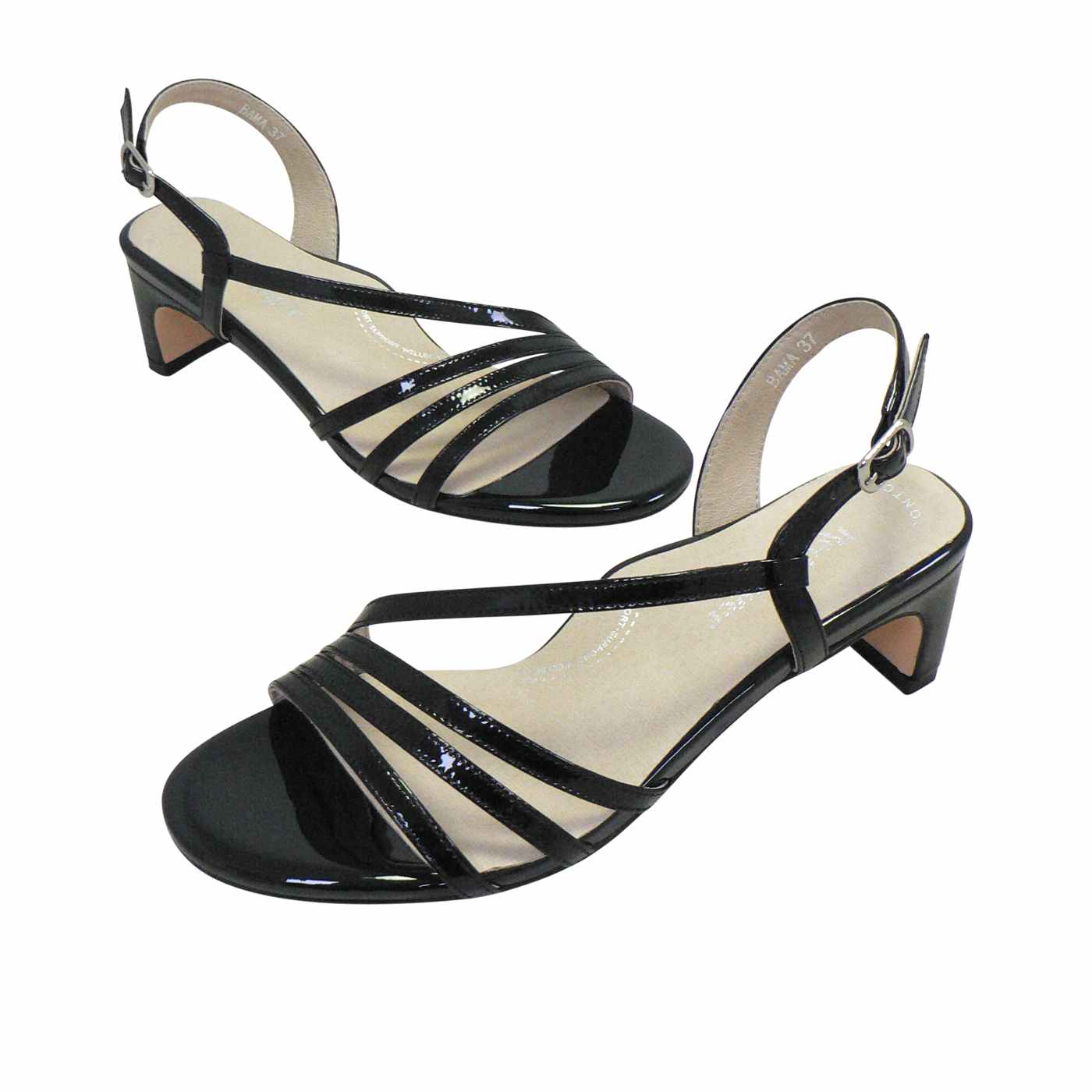 Finished with a silver buckle and a chic low block heel, BAMA in Black Patent adds a glamorous touch to weddings, parties, or any special occasion.
