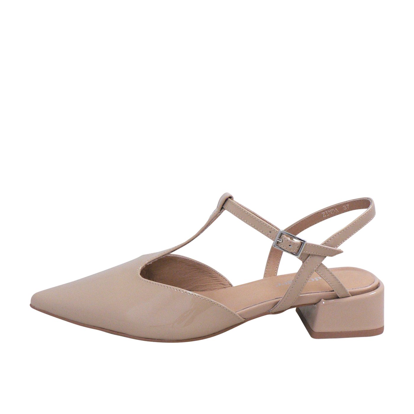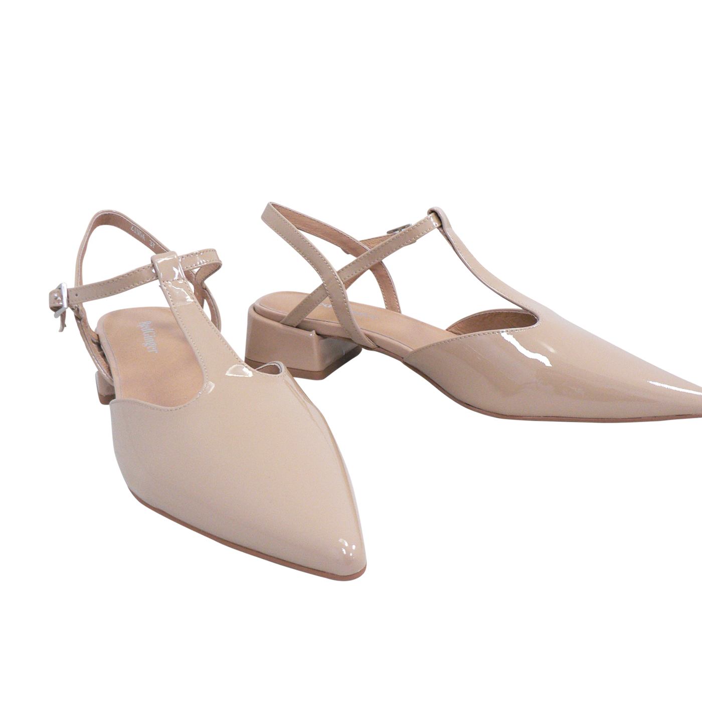 Polished, feminine, and endlessly versatile, the Zinda by Red Ginger is your new go-to heel for effortless sophistication. Crafted in a glossy nude patent finish, this elegant slingback features a refined pointed toe and a flattering T-bar strap that adds delicate structure while keeping your foot secure. The low block heel offers just the right amount of lift, making it perfect for all-day wear—from office meetings to evening events.