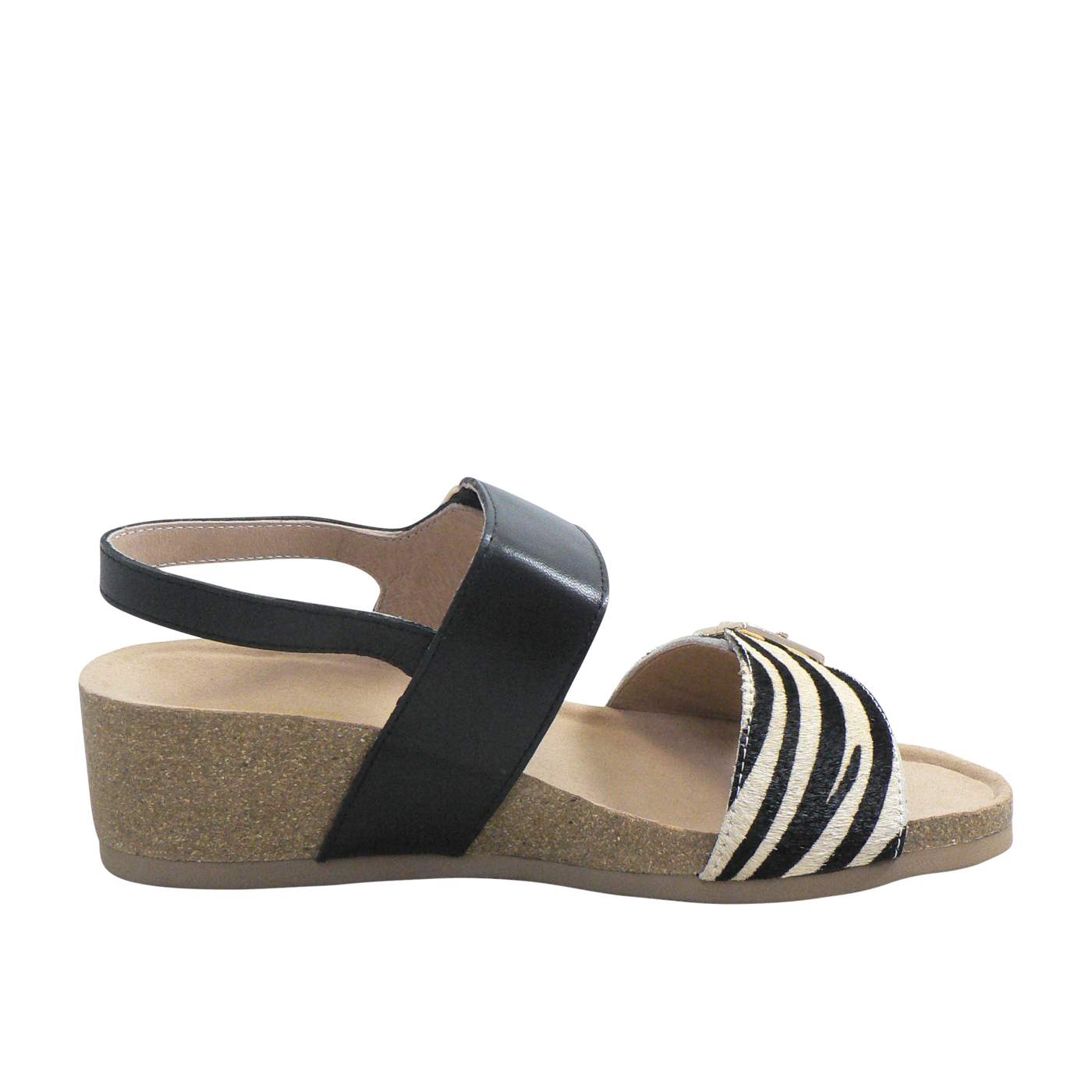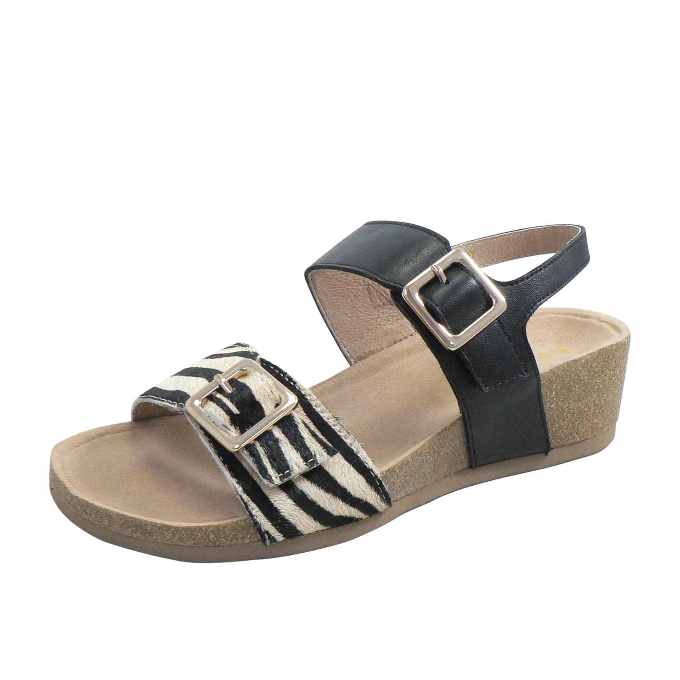 The Red Ginger Paige sandal in Zebra/Black features a striking contrast between the zebra-printed leather front strap and a sleek black leather back strap, giving it a bold, fashionable look. With a practical, comfortable wedge heel and adjustable buckle, this sandal is both stylish and functional, perfect for casual outings or a touch of flair in your everyday wardrobe. The leather upper ensures durability and a comfortable fit, while the neutral tones make it versatile enough to pair with various outfits.