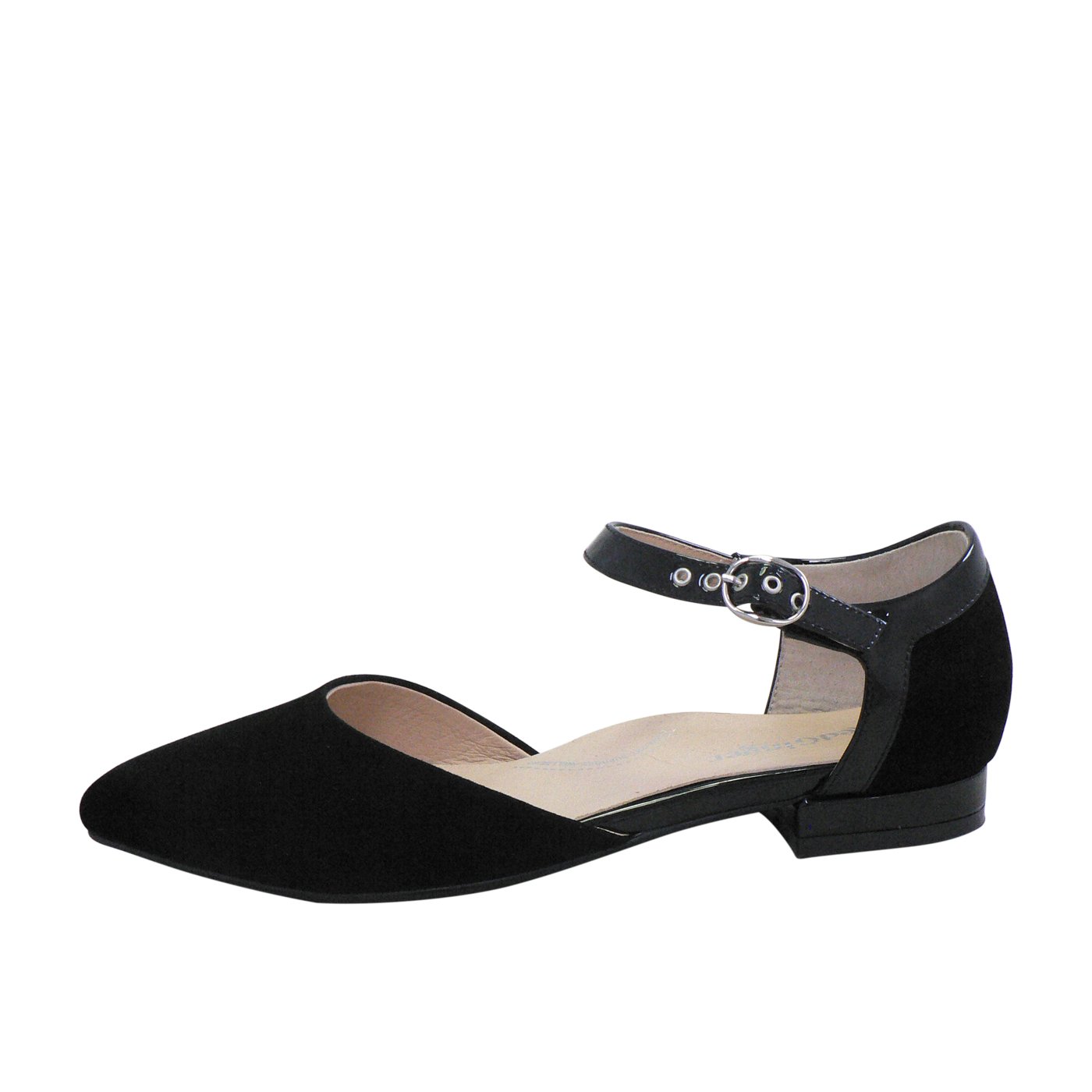 The Red Ginger Avery in Black is a sophisticated and elegant d’Orsay flat, designed for timeless style and effortless comfort. Crafted from premium leather, the sleek black upper combines a soft suede-like front with a patent ankle strap, creating a striking contrast. The adjustable buckle closure ensures a secure and customizable fit, while the low-profile heel adds a touch of refinement without compromising on comfort. Perfect for both work and evening wear, the Avery flat is a versatile staple for any wardrobe.
